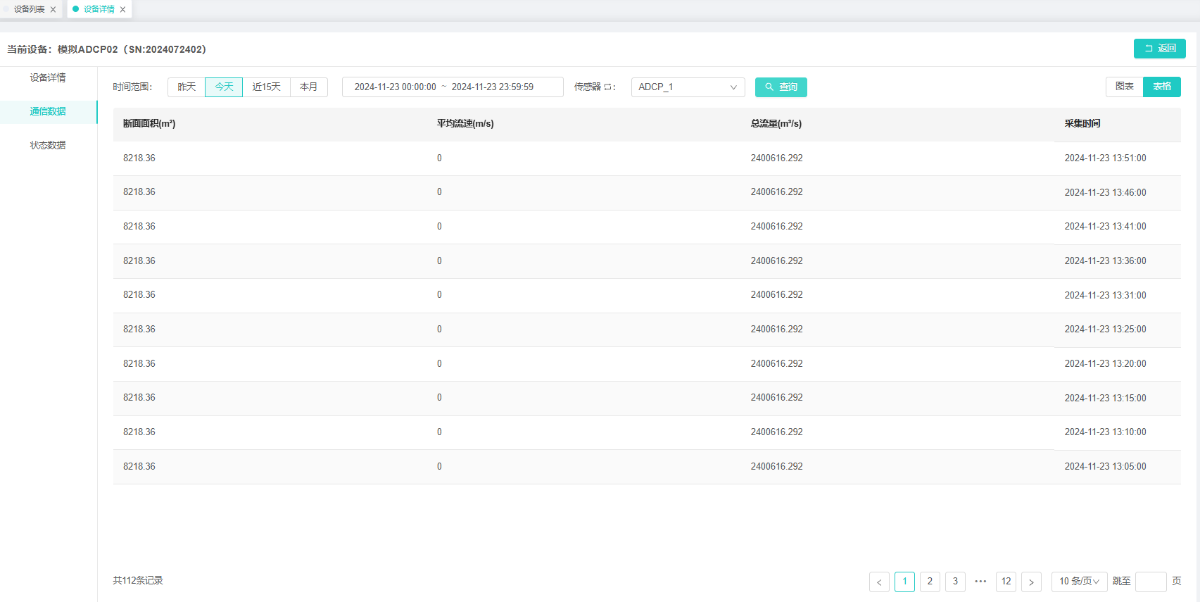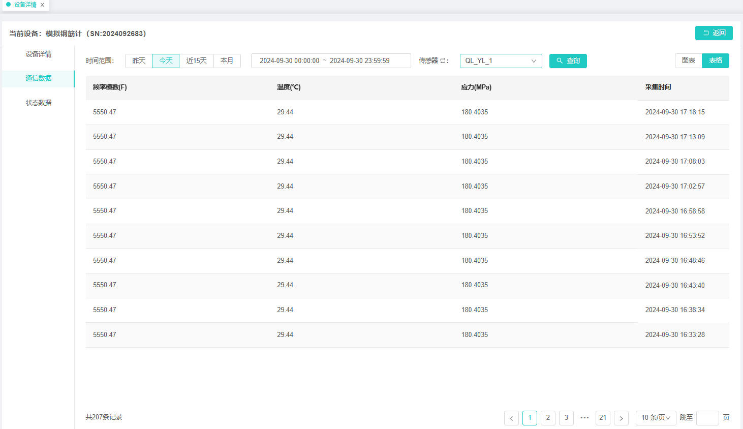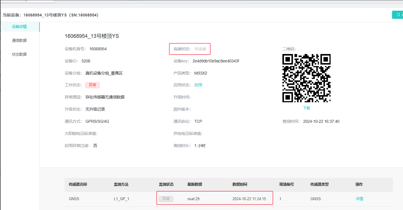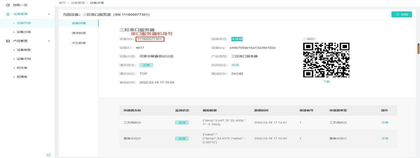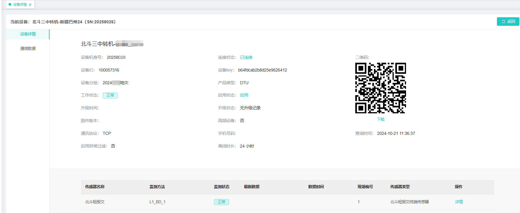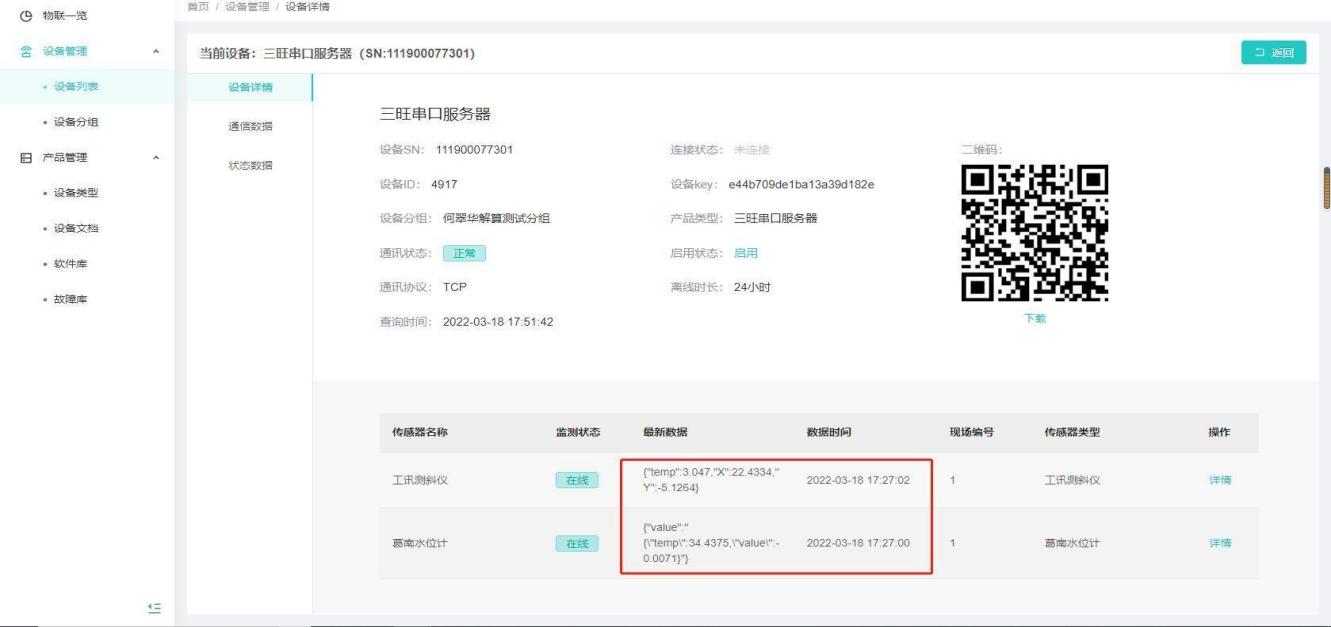 4、详情页面有5个Tab页,分别为【设备详情、通信数据、状态数据、固件升级、升级记录】