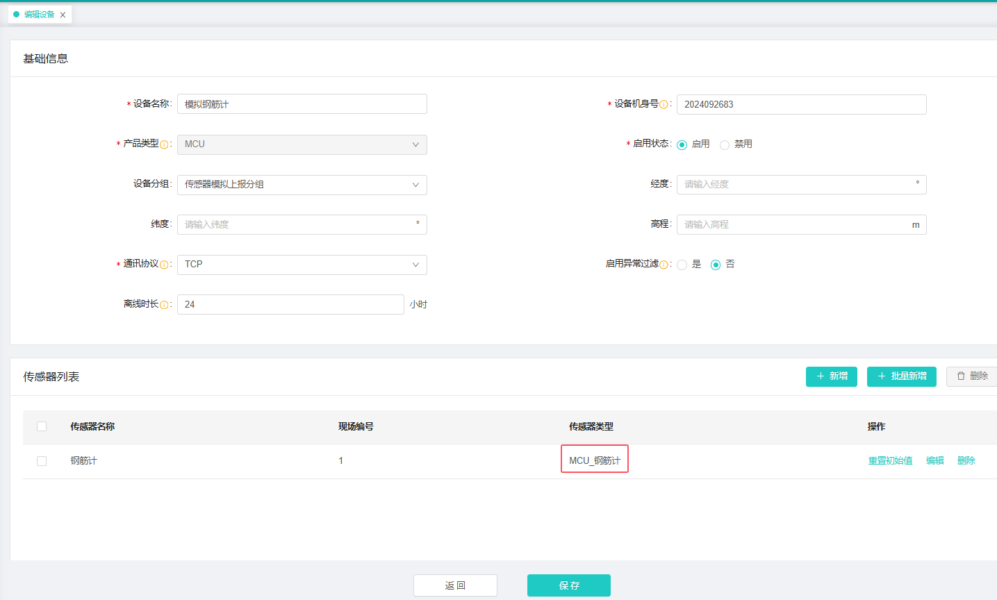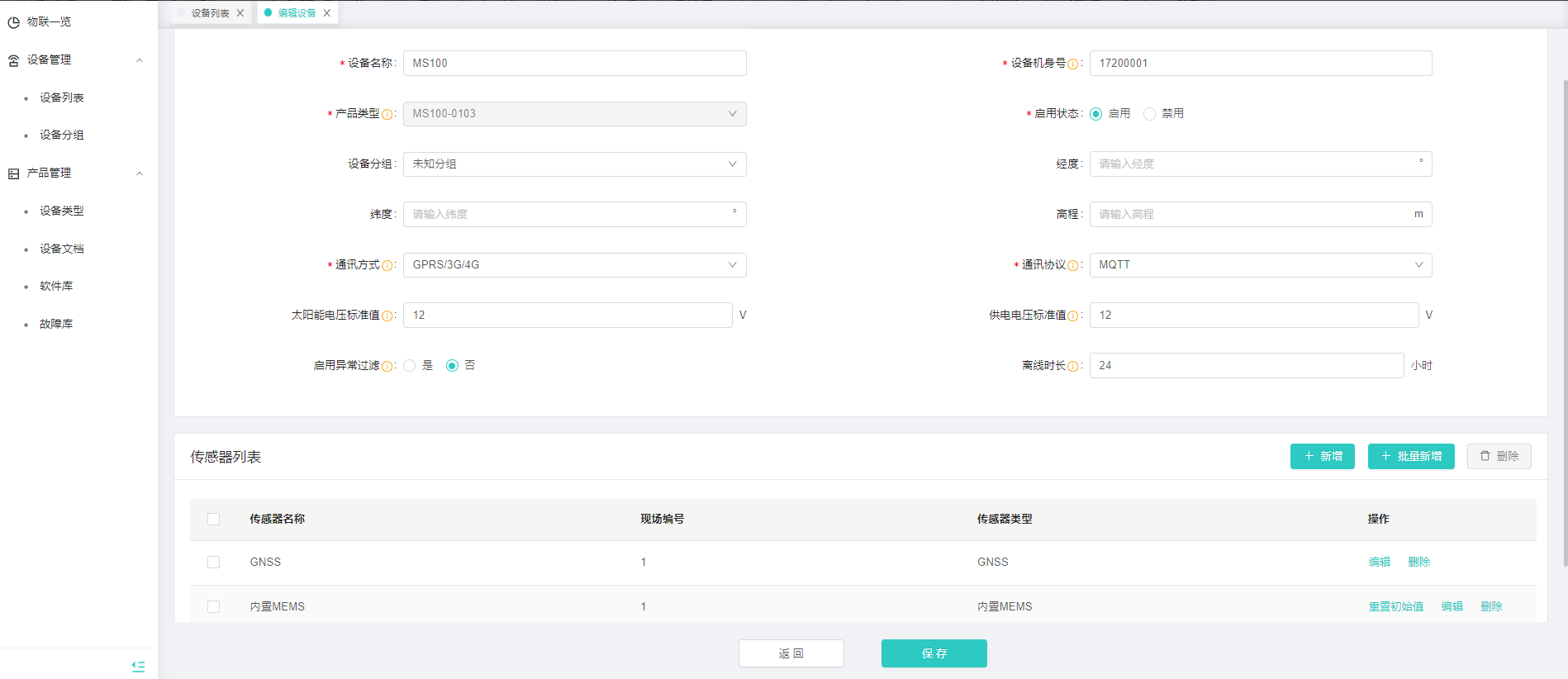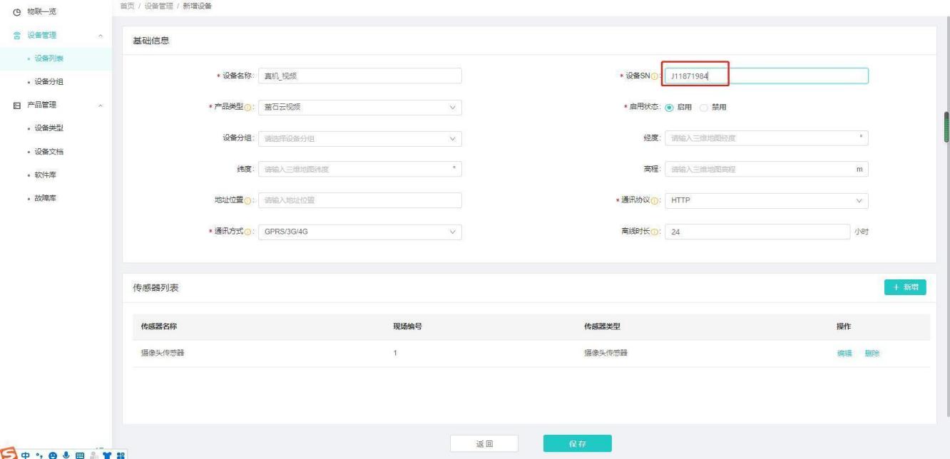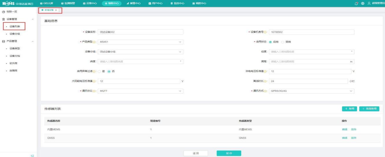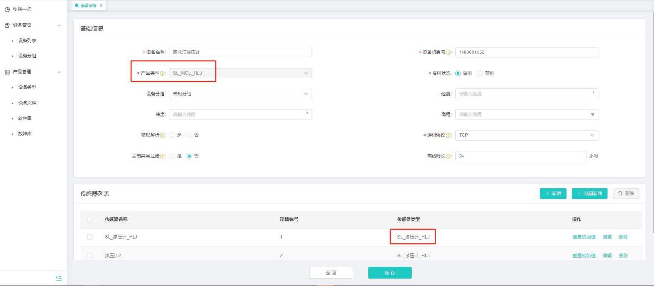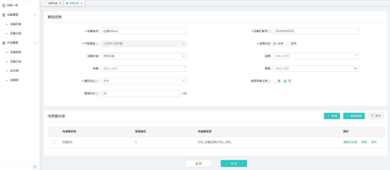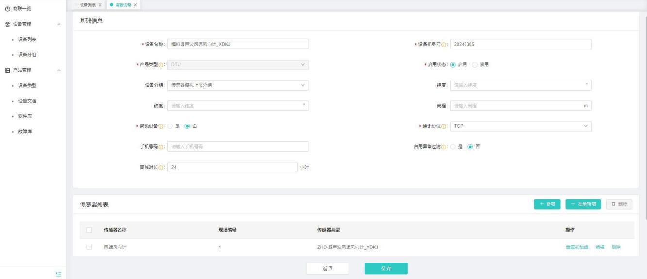 注:设备类型系统预置常用的类型,传感器类型亦同