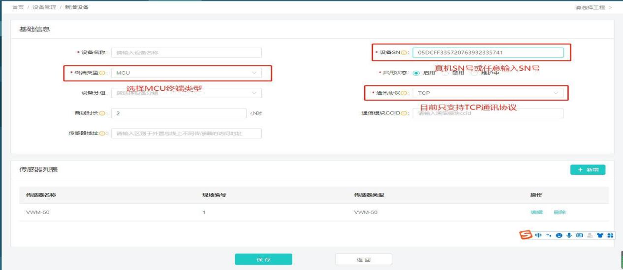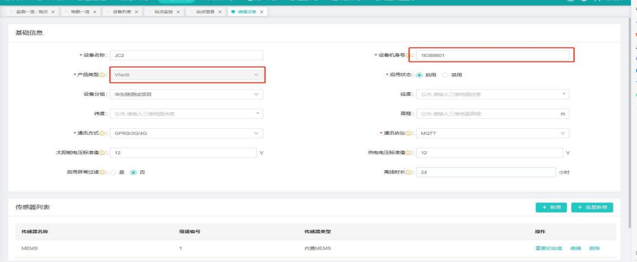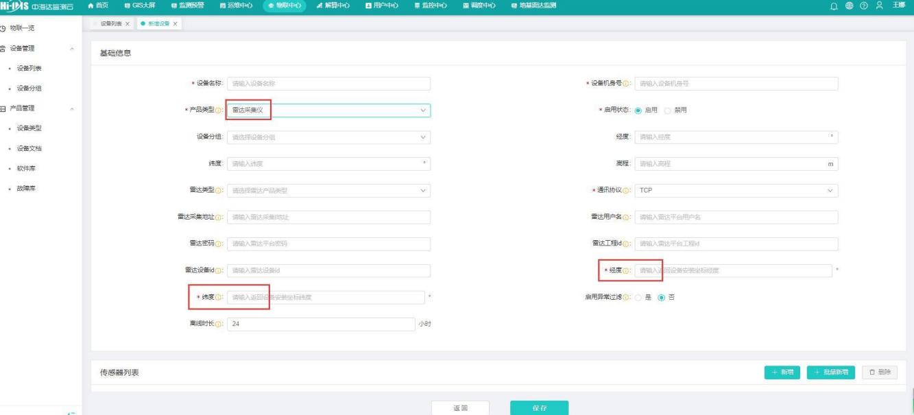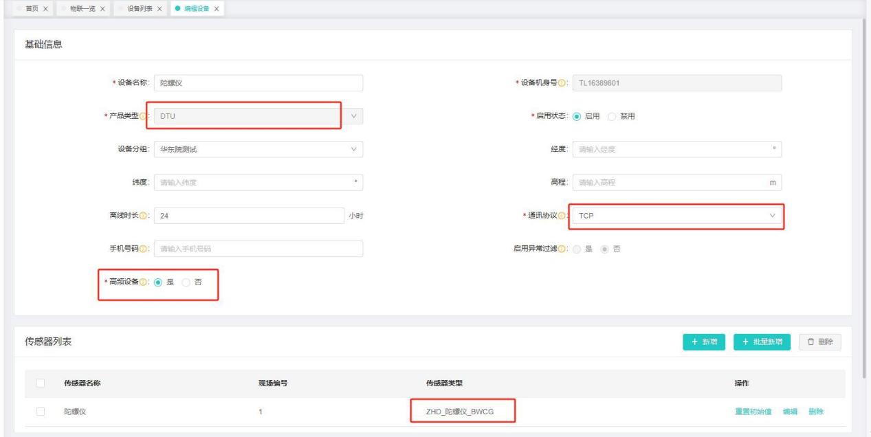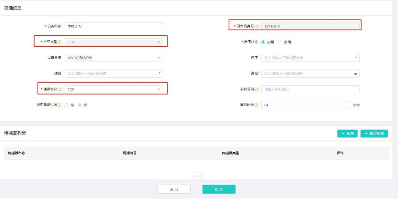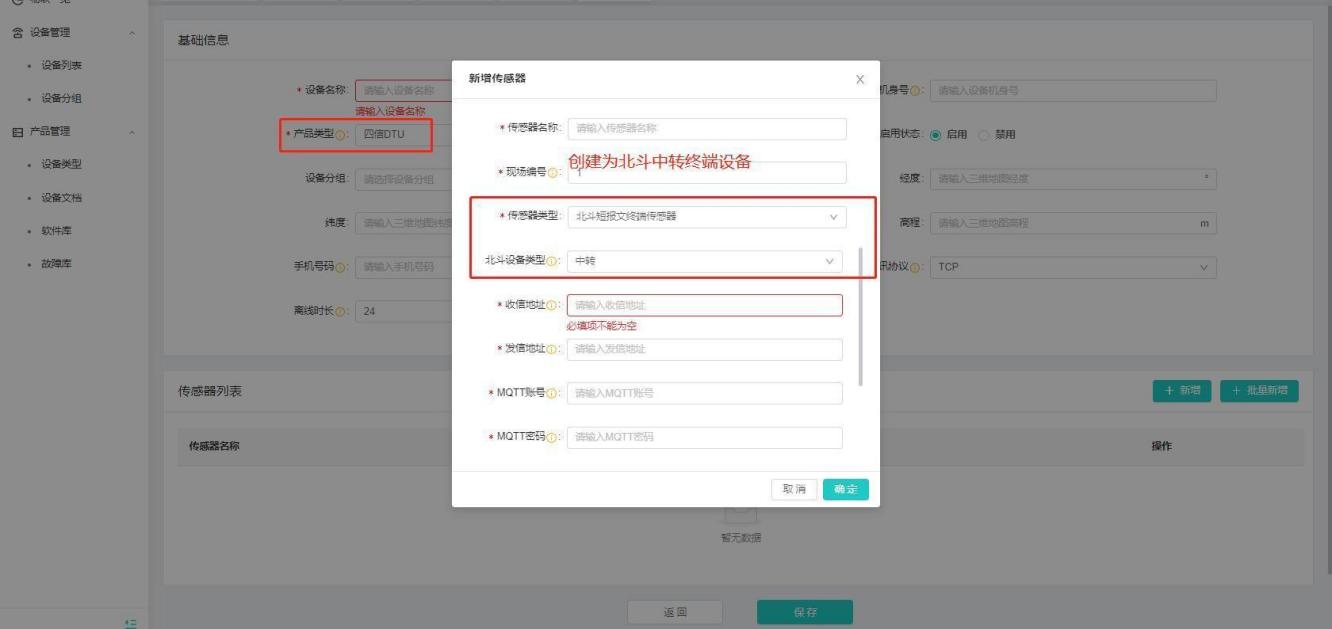 注:设备类型系统预置常用的类型,传感器类型亦同