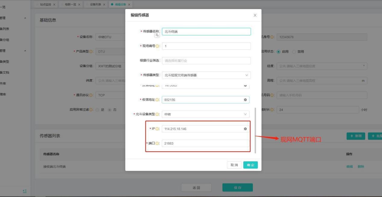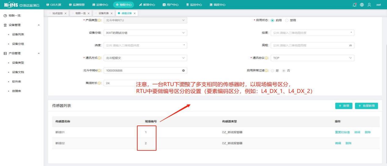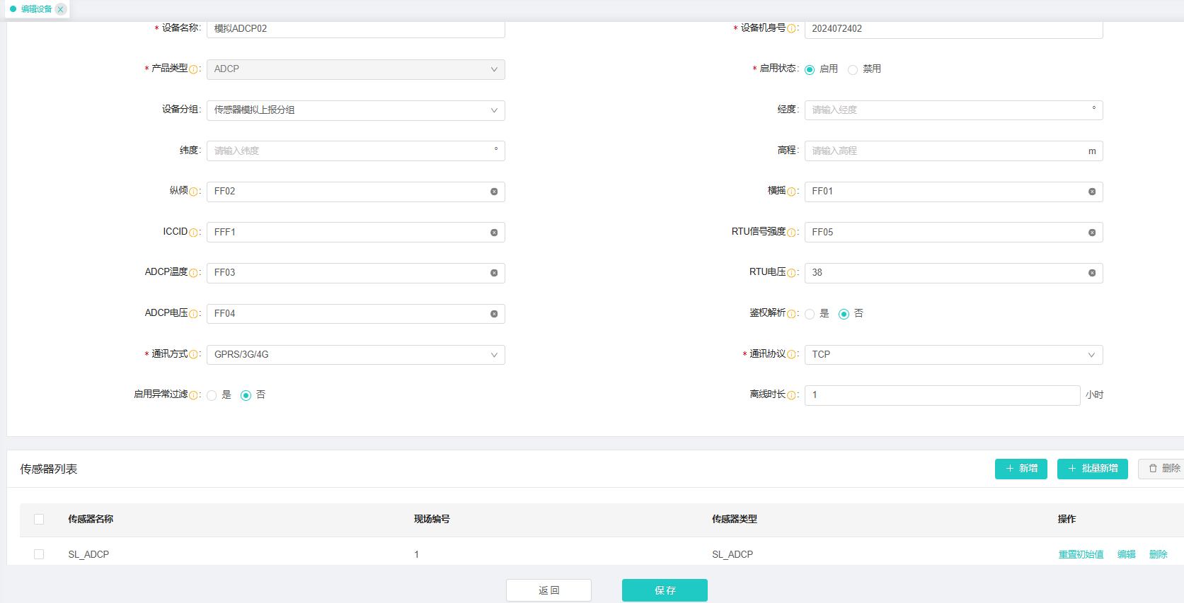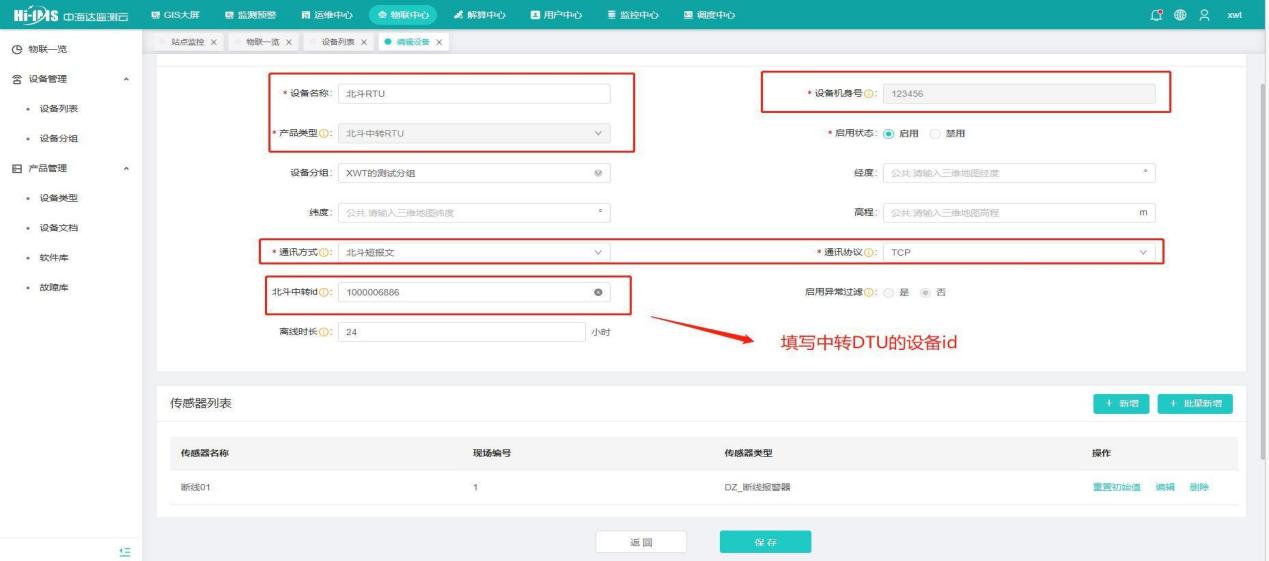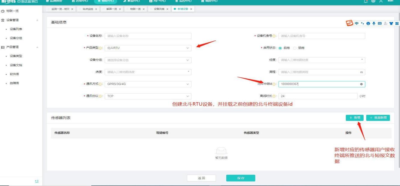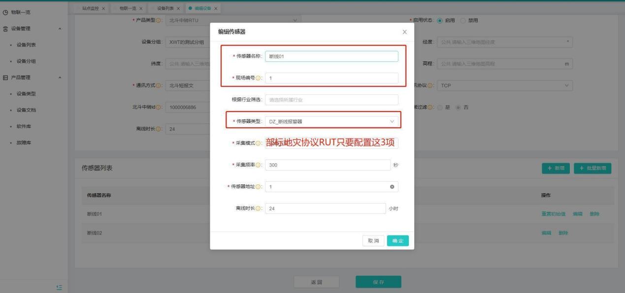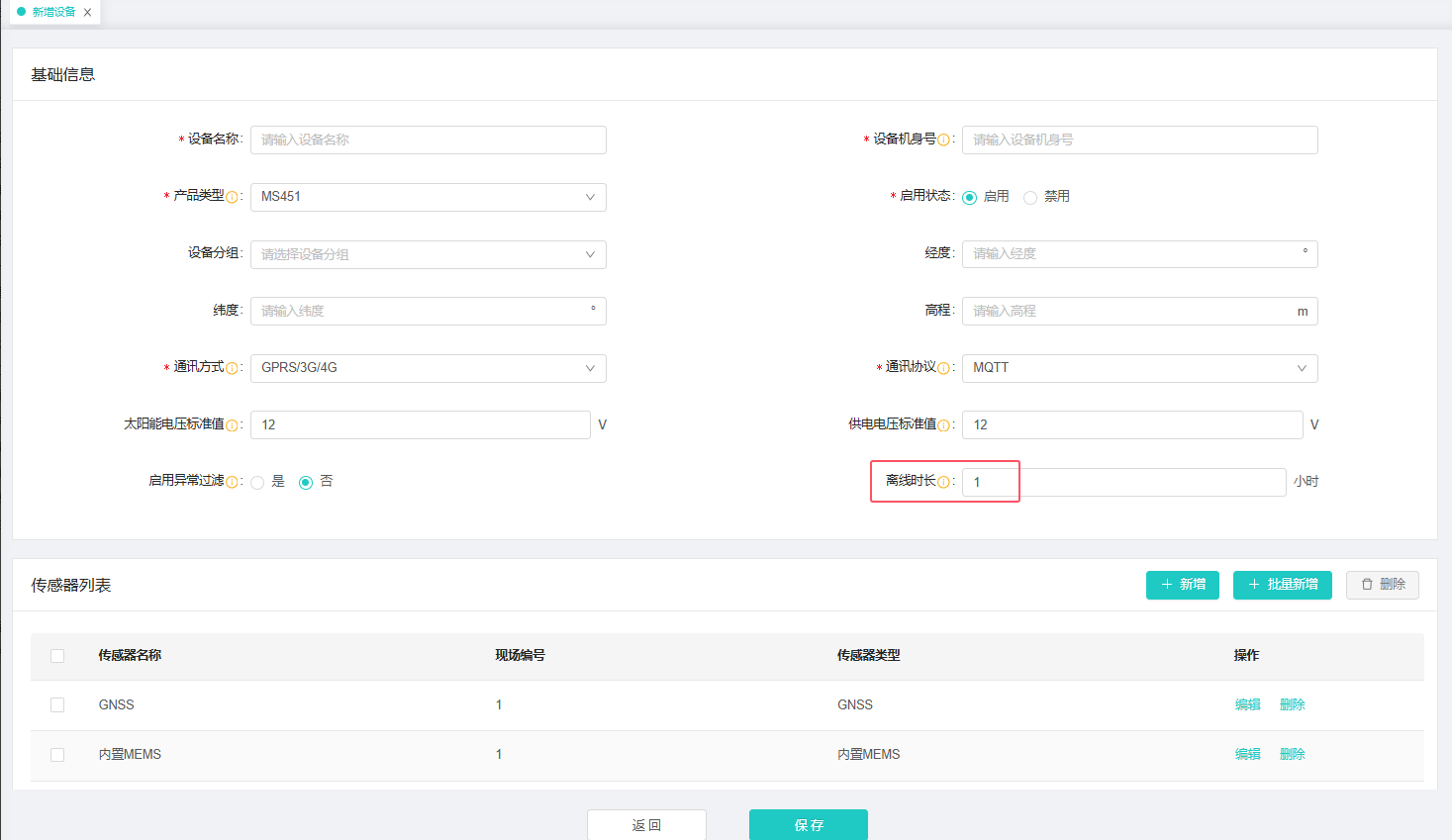 注:设备类型系统预置常用的类型,传感器类型亦同