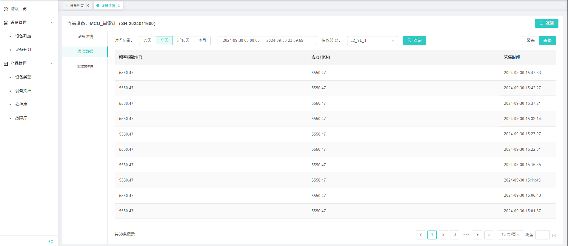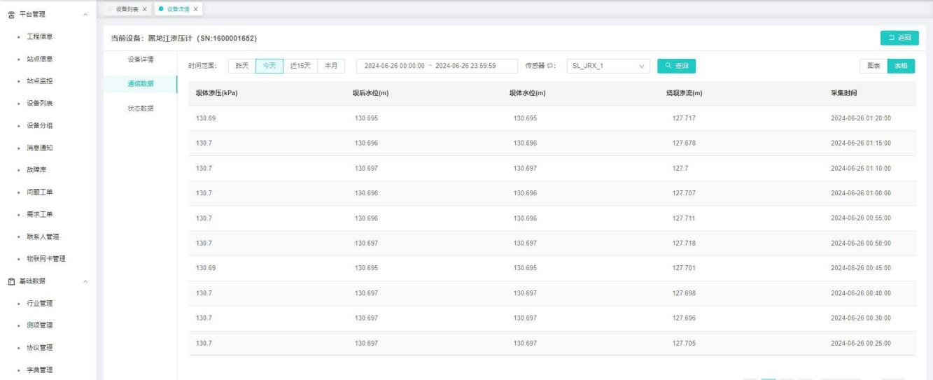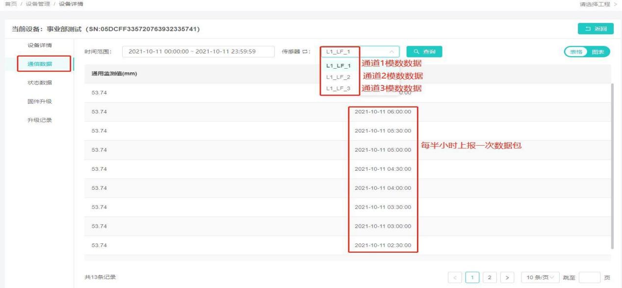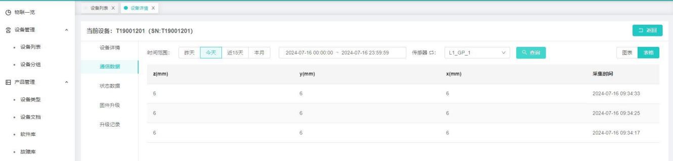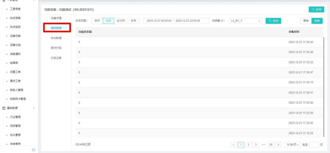 在物联中心“设备管理”-“设备列表”-“更多”-“通信数据”查看界面展示