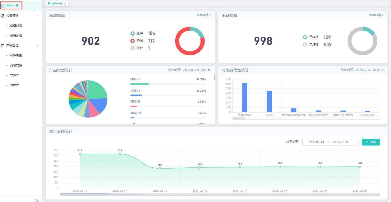 【操作说明】登录平台后,进入【物联中心】-物联一览,以报表方式展示物联数据统计信息