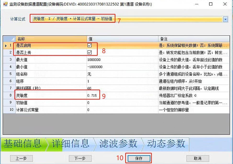 第三步:解析数据,转换数据包中的时间戳,同时获取数据包中通道号等于配置项chn的数据,解析该通道中的模数数据f,根据公式result = (f – F0) * k,解析出频率模数result,作为结果返回。
