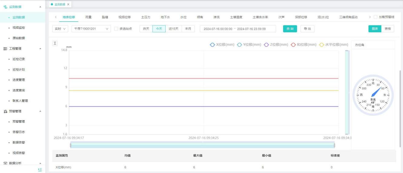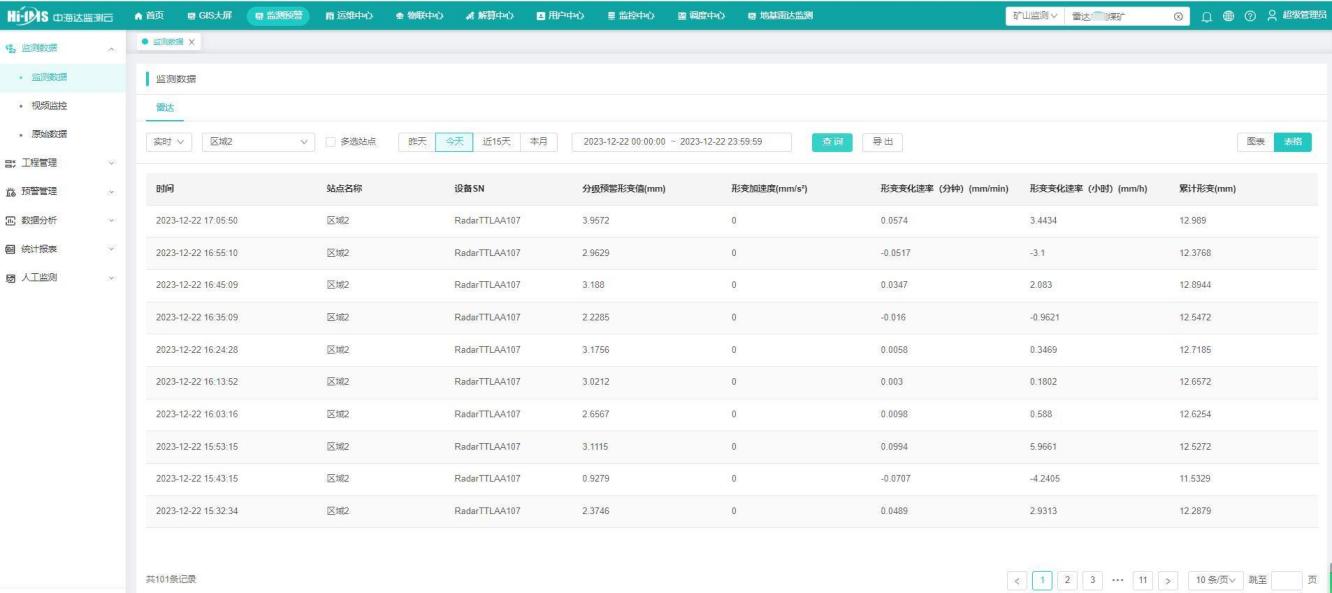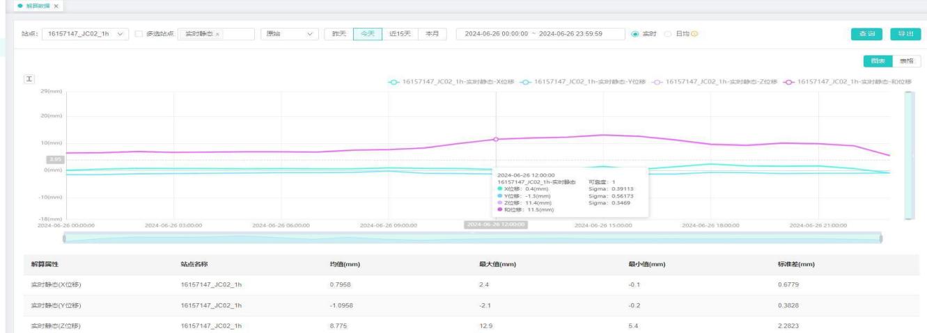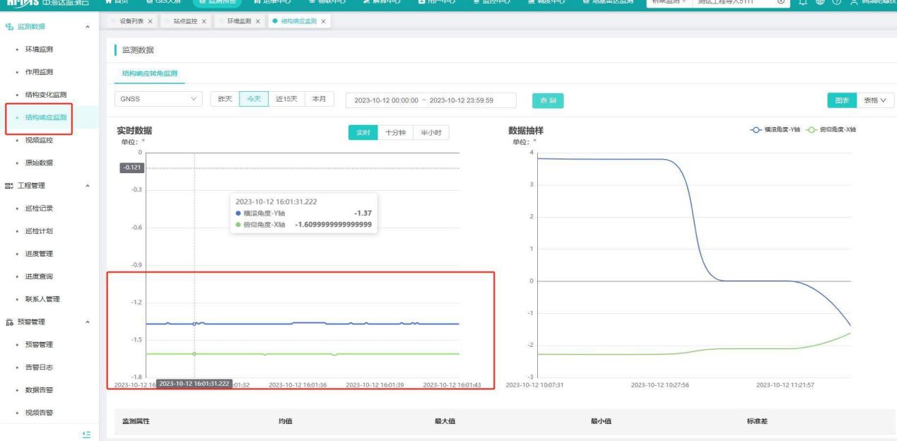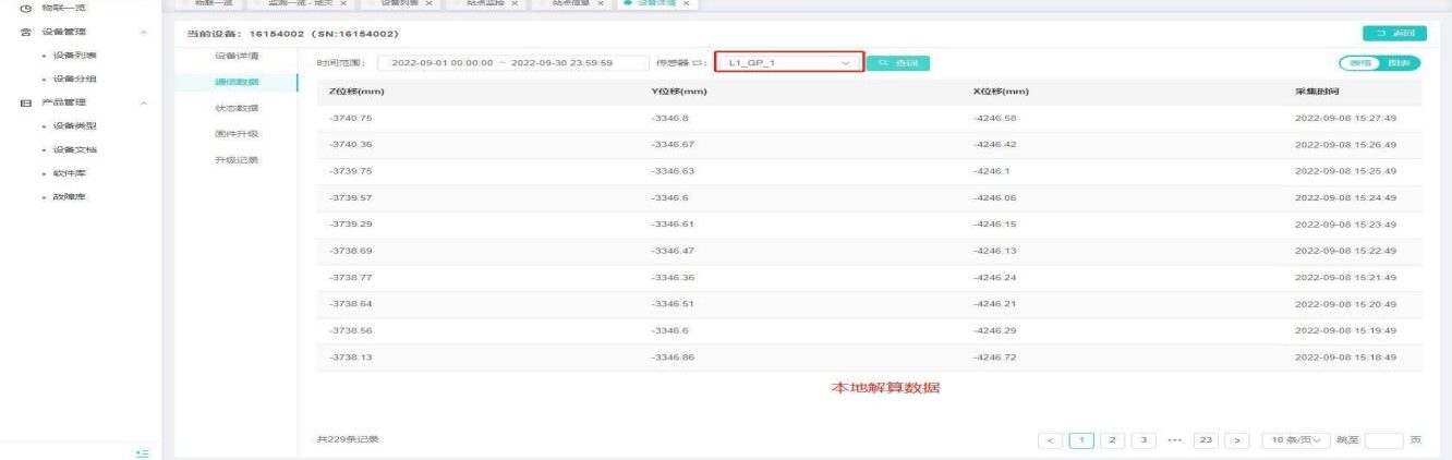 通信数据,展示解析后的传感器监测数据及本地解算数据