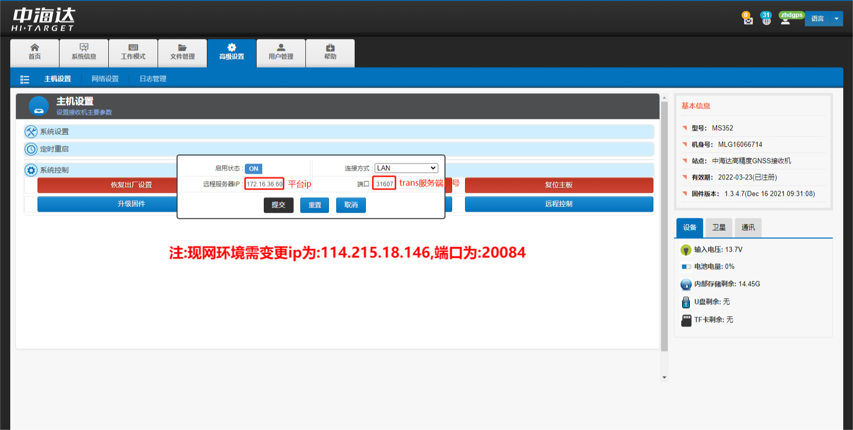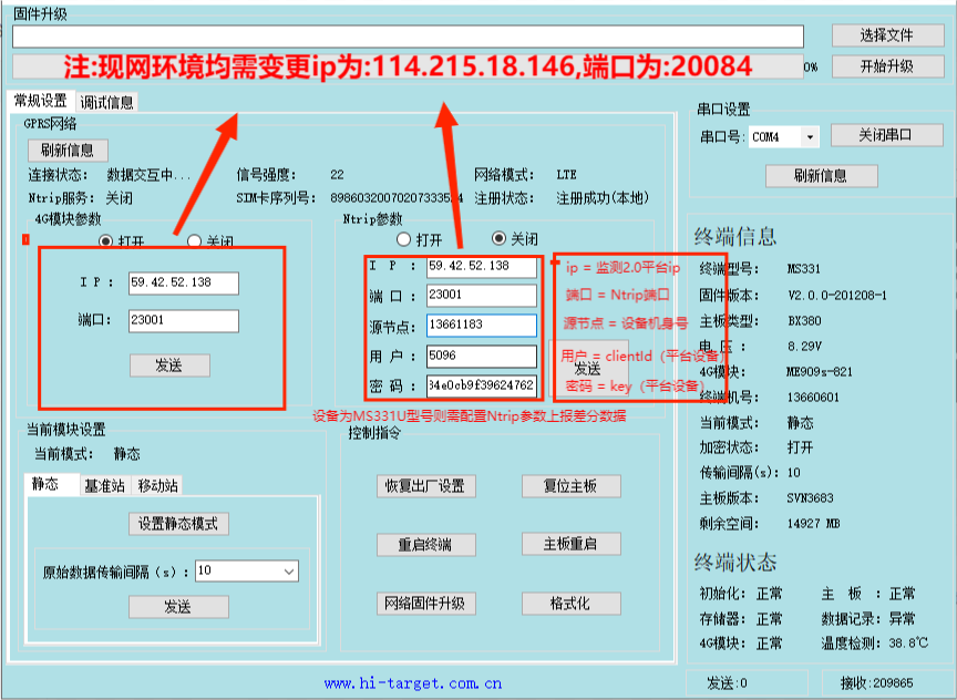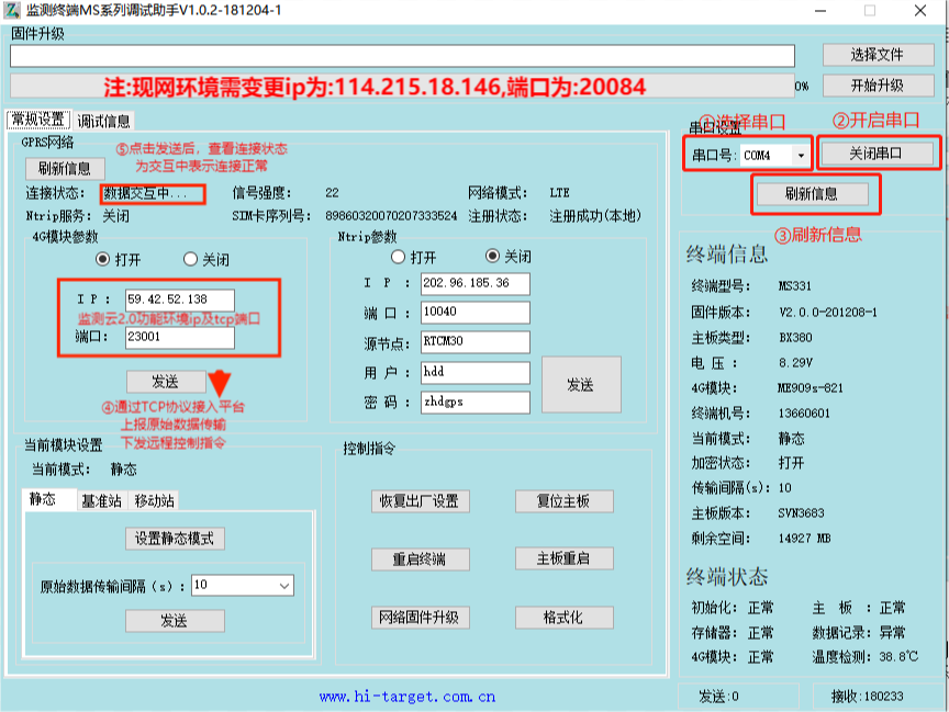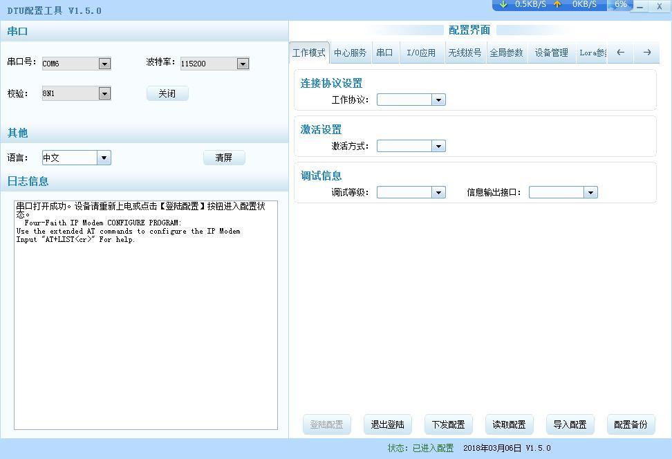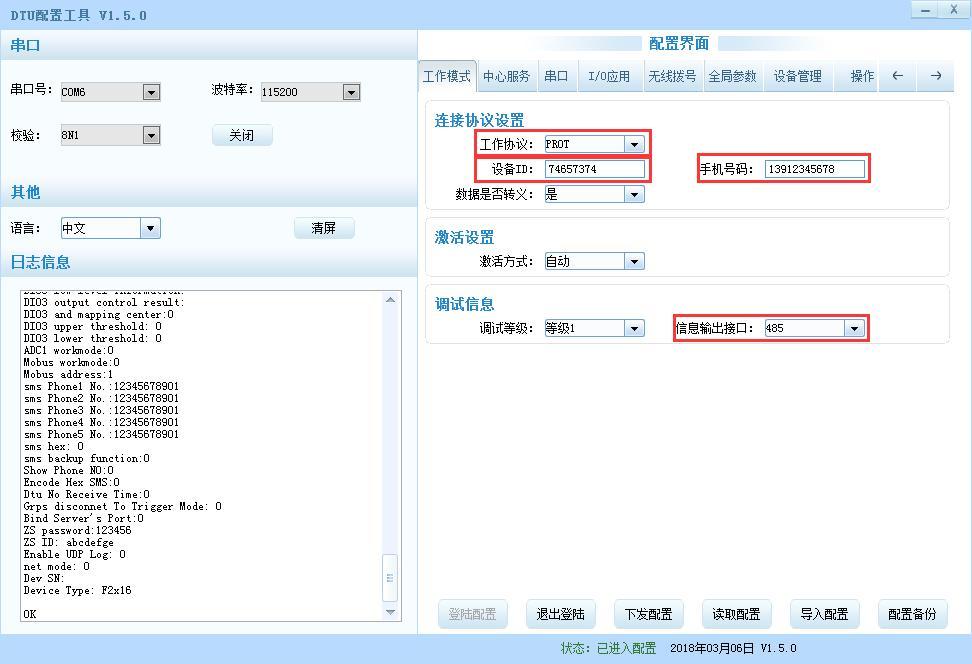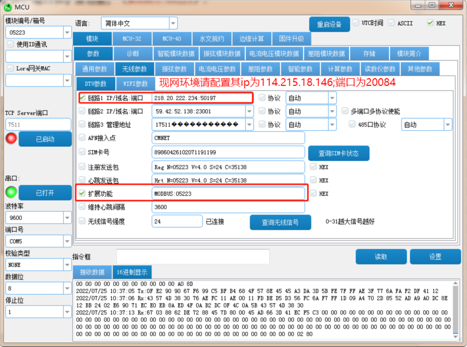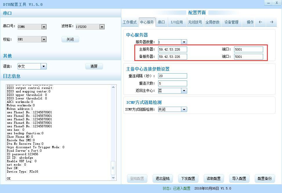 【功能说明】对四信DTU设备的远程指令配置IP/端口和远程重启等功能