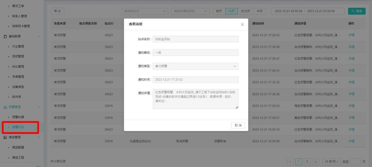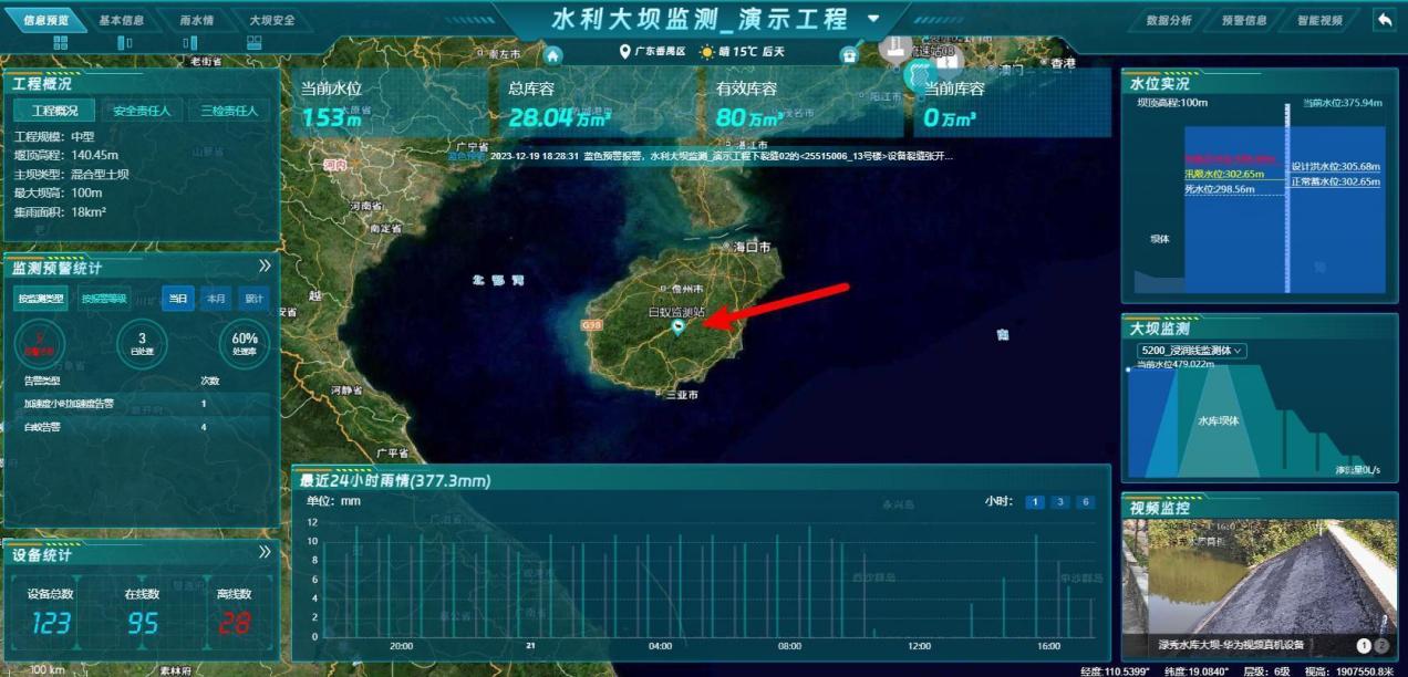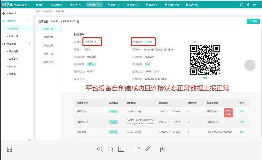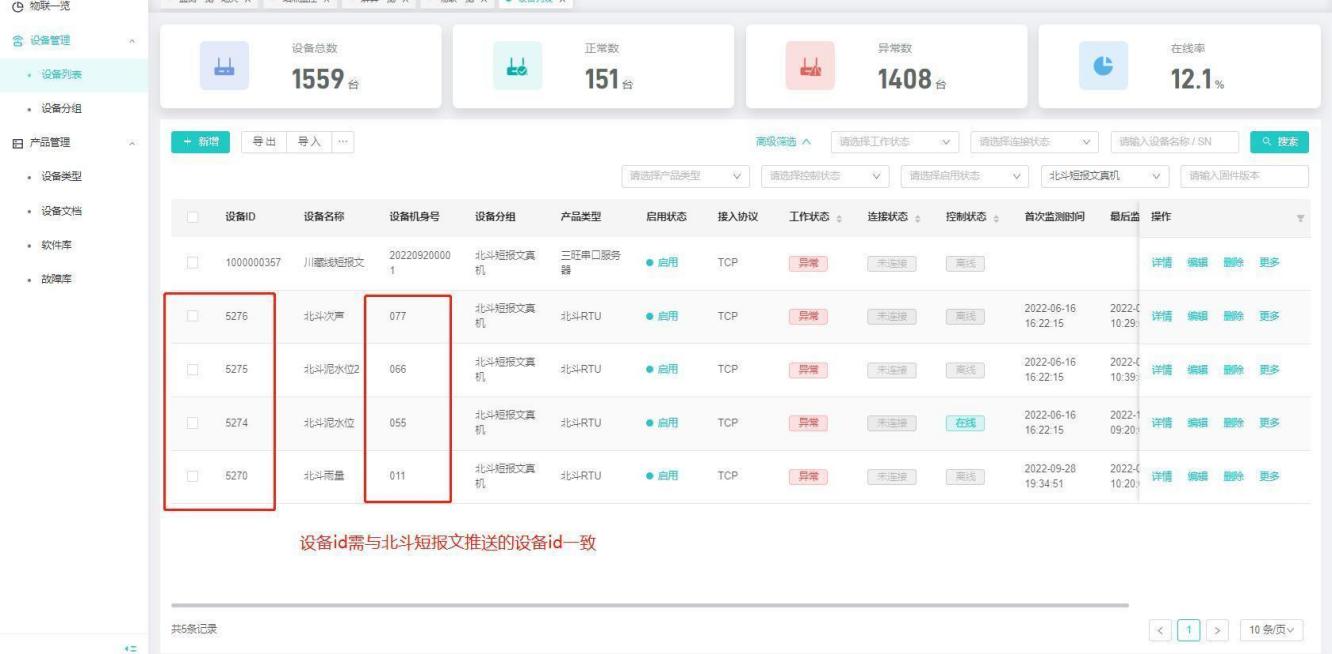 7、设备上线或离线后,GIS大屏【设备接入、设备状态】、首页【设备数据统】、物联一览、设备列表设备统计、运维中心-站点监控、设备上线离线通知、监测报告设备统计均会正常更新。