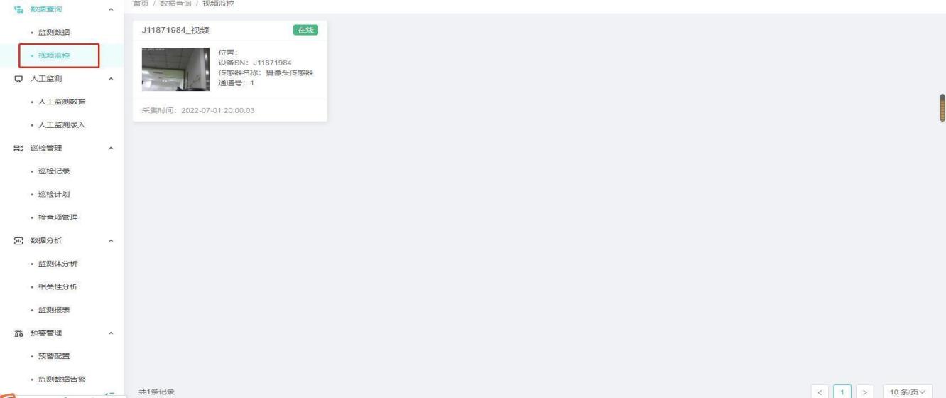 5、进入”监测预警”-”视频监控”查看已接入的视频设备