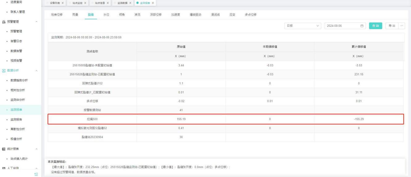 重置初始值成功后,设备新上报的数据在监测数据中展示应用重置初始值后的结果;监测报表中也同步展示应用重置初始值后的结果。