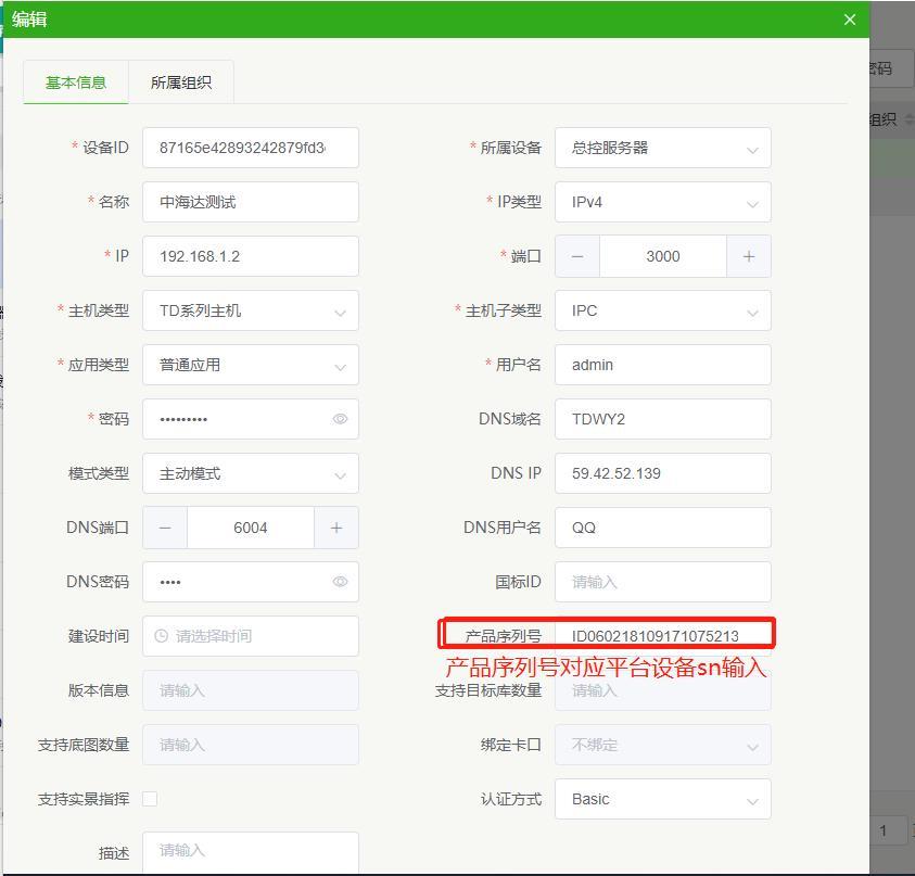 登录天地伟业设备平台http://172.16.36.234:7000通过用户名:admin 密码:pg123456登录