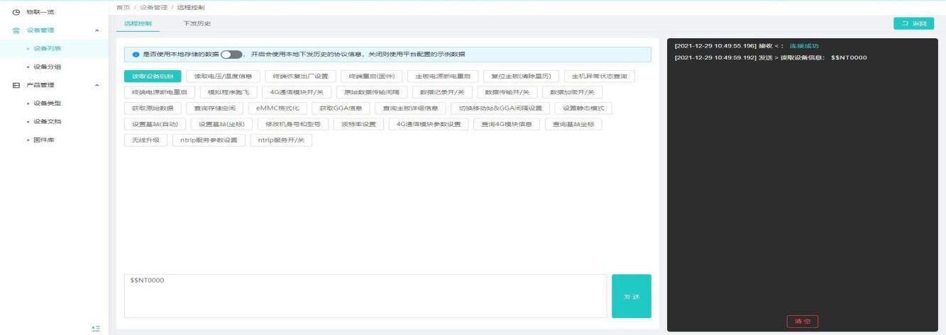 2、点击【发送】按钮,发送当前协议;右侧【远程控制】框内,根据设备回执情况进行展示 QQ截图20210928161942