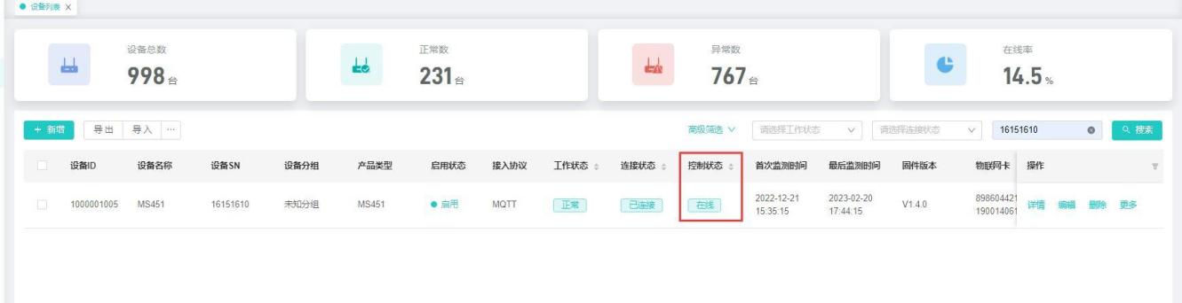 1、已有支持远程控制设备接入平台,连接状态为【在线】,控制状态为【在线】