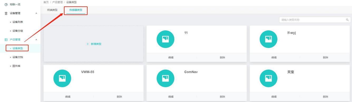 切换到传感器类型Tab,可对传感器类型进行新增、编辑、删除操作