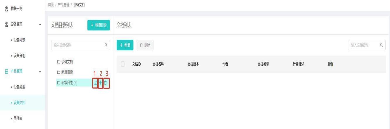 文档目录列表界面可进行文档目录编辑、添加子目录和删除操作