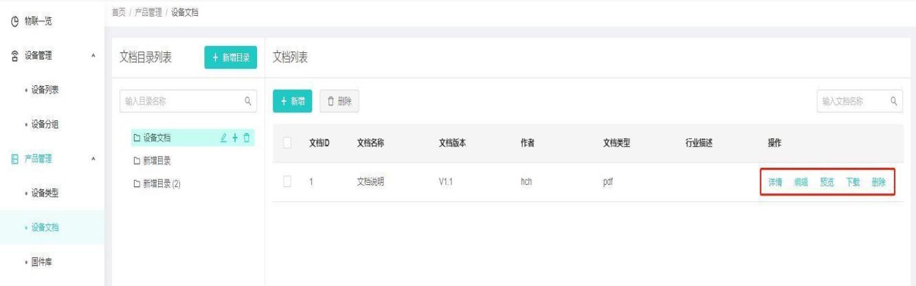 在文档列表界面,可对文档进行闲情查看、编辑、预览、下载、删除操作