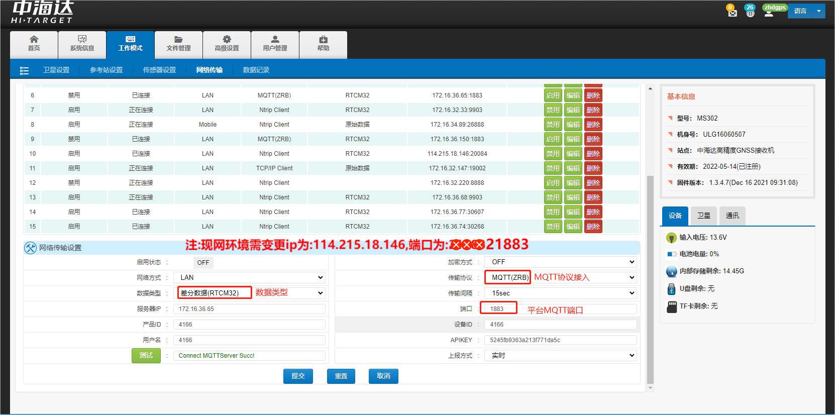 【功能说明】MQTT、TCP、NTRIP协议设备接入平台规范