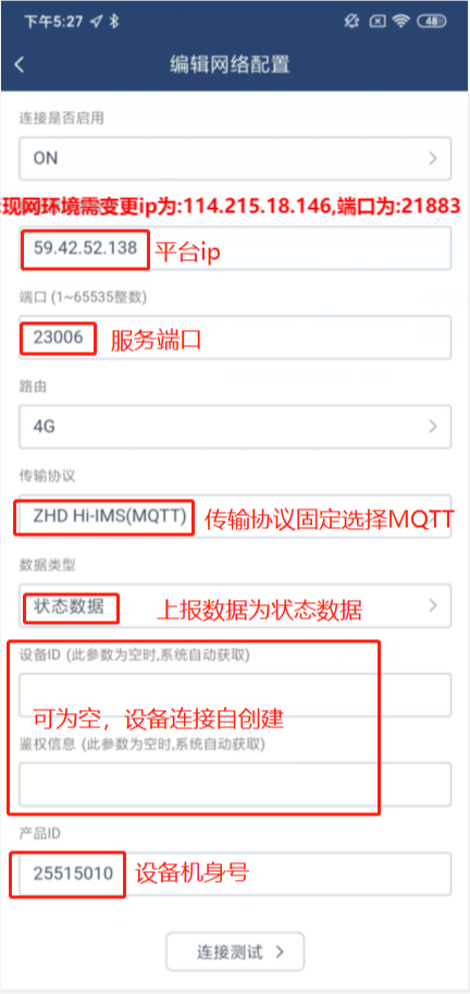 使用真机接入上报/使用网络调试助手模拟设备上报数据包