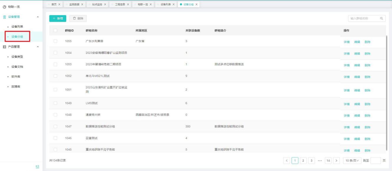 【功能说明】设备分组详情展示及【增】【删】【改】【查】等操作