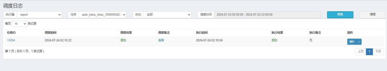 任务调度中心“report”执行器中生成定时任务“auto_trans_rinex_设备ID”,每天凌晨2:10分自动转换前一天GNSS数据为Rinex数据文件。