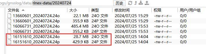 可手动在观测数据中下载,或服务器上直接下载,文件存储目录“rinex-data/年月日”,rinex文件名为“设备机身号+年月日”。