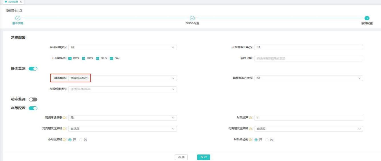 【操作说明】1、在运维中心-平台管理-站点信息中编辑站点信息,切换到解算配置-高级配置,MEMS制选择“开”,点击保存。 IMG_257