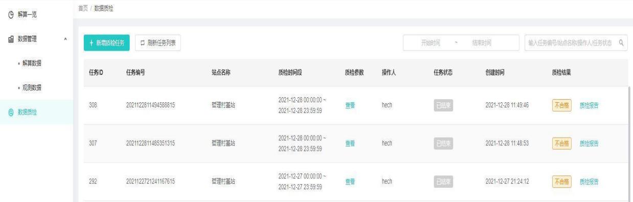 数据质检列表界面可查看质检参数,任务状态,质检结果。