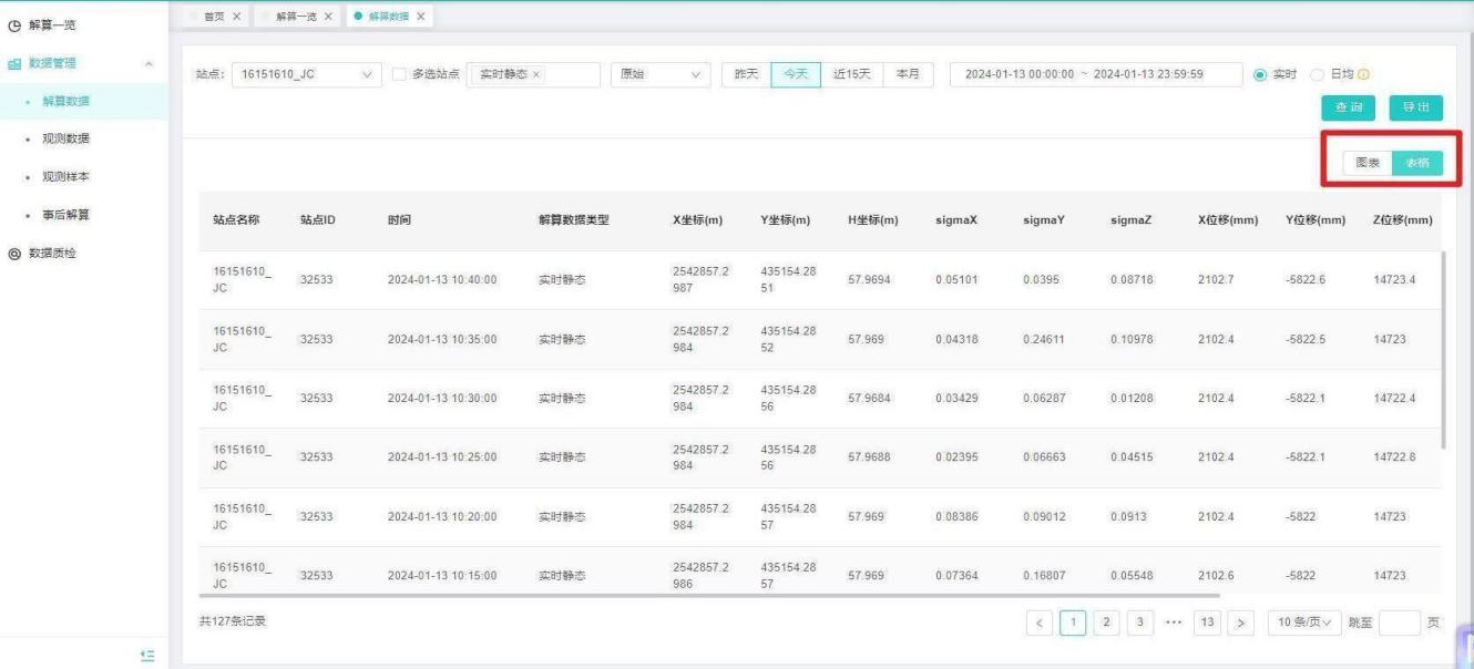 点击表格,可切换为表格展示解算结果。