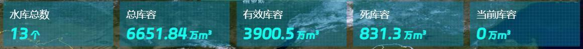 2、水库数及库容统计:显示权限下所有水库工程的【水库总数、总库容、有效库容、当前库容】的数据;