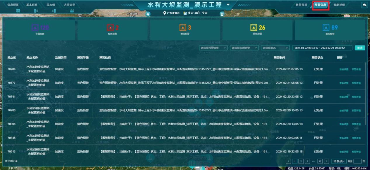 (5)预警信息:展示当前工程各等级的预警信息