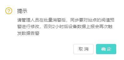 如发现预警为虚假预警,设备问题或人为问题导致设备出现异常波动,致使平台触发预警,可手动在【数据告警】中进行手动消警处理