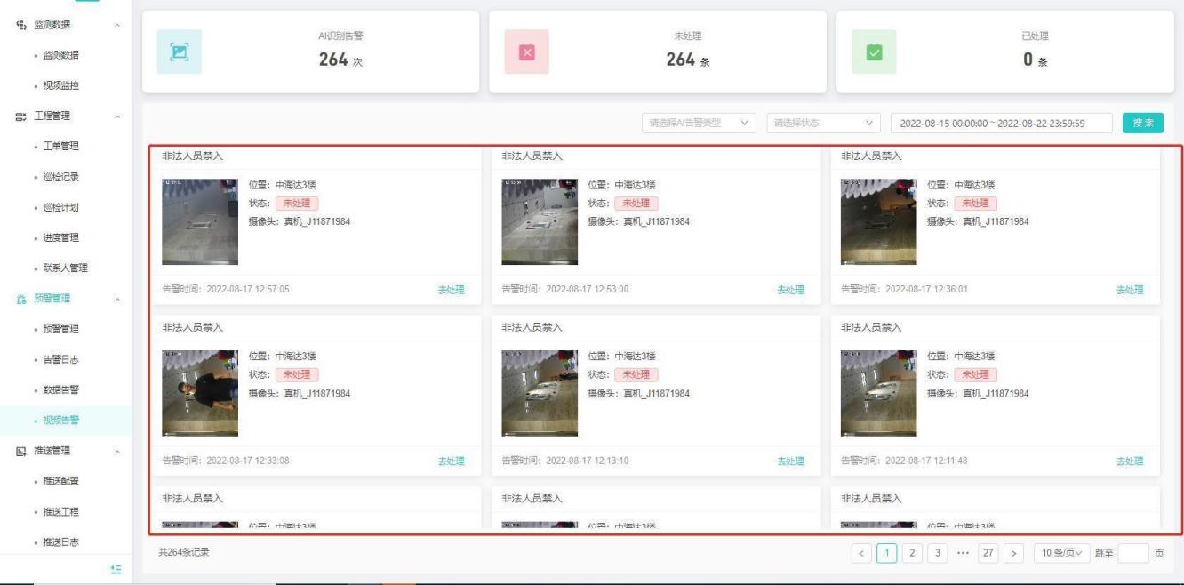 【操作说明】用户登录平台后进入【监测预警】子系统 “预警管理”-“视频告警”