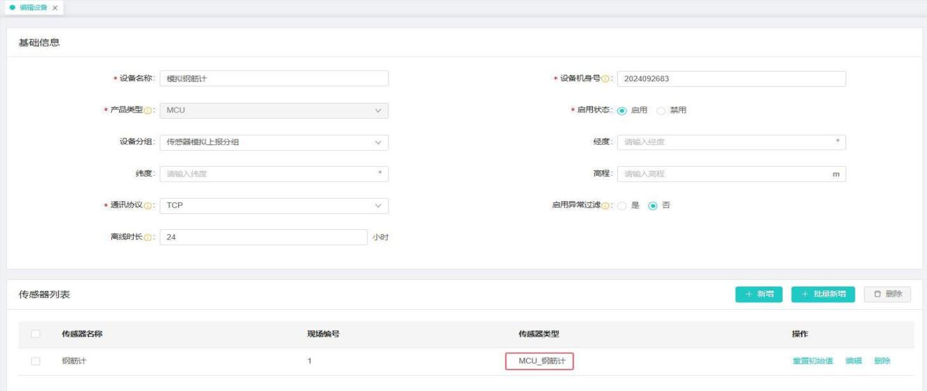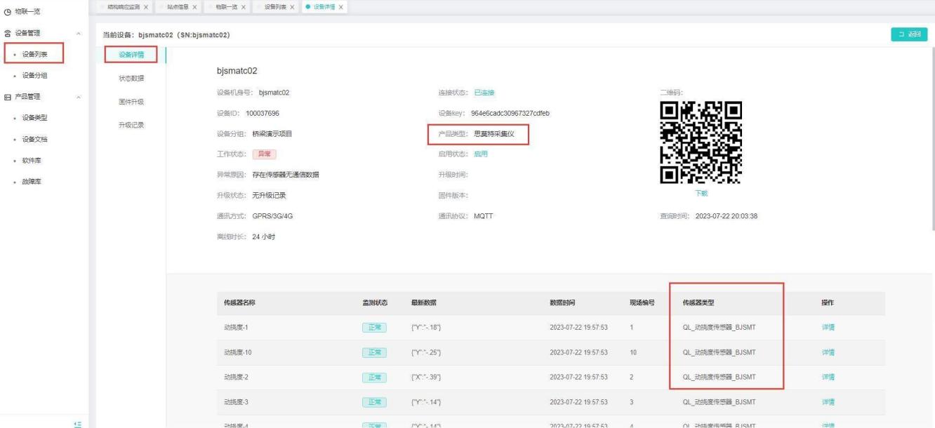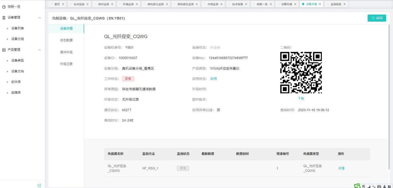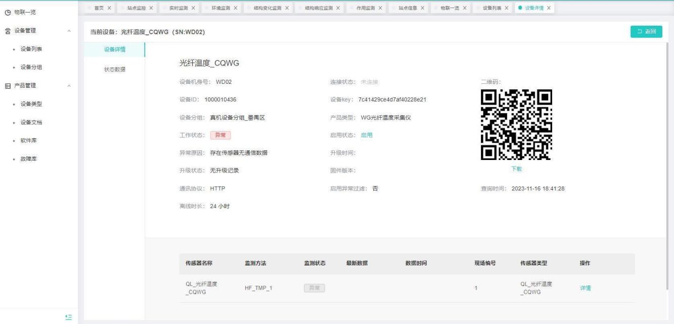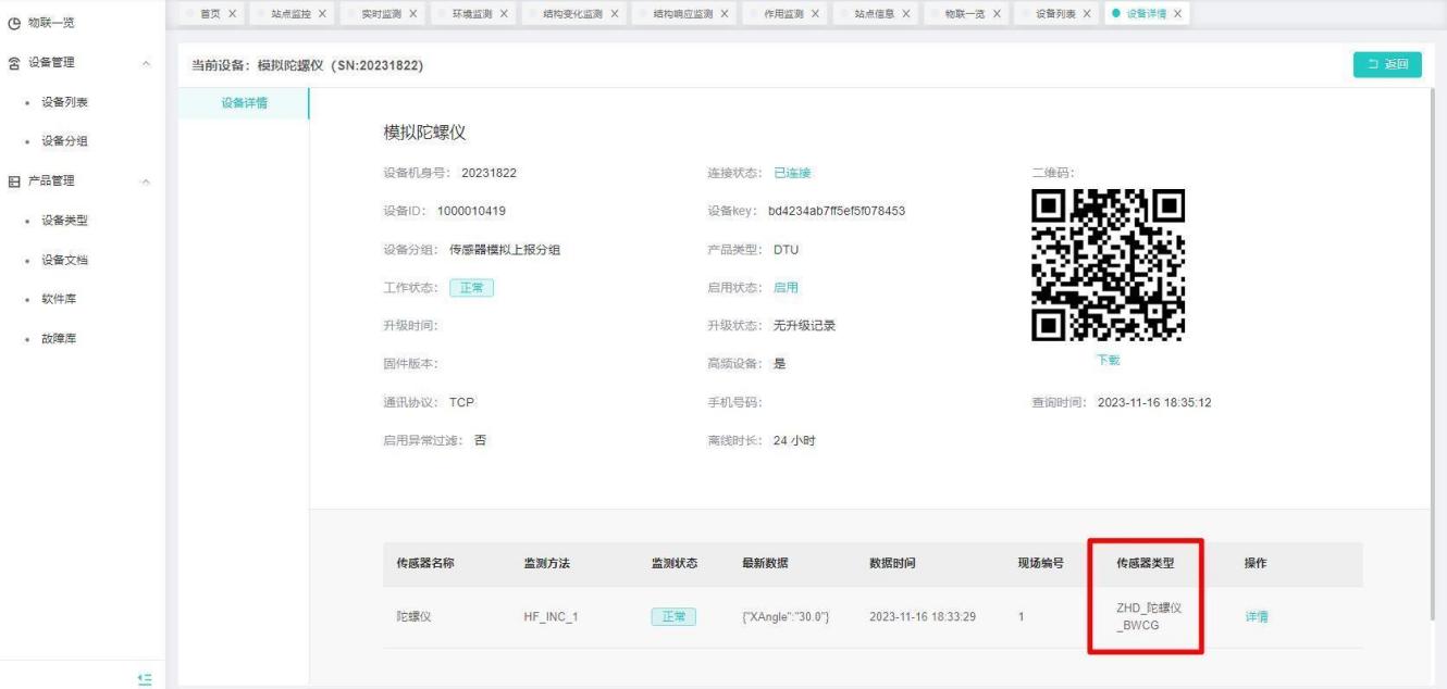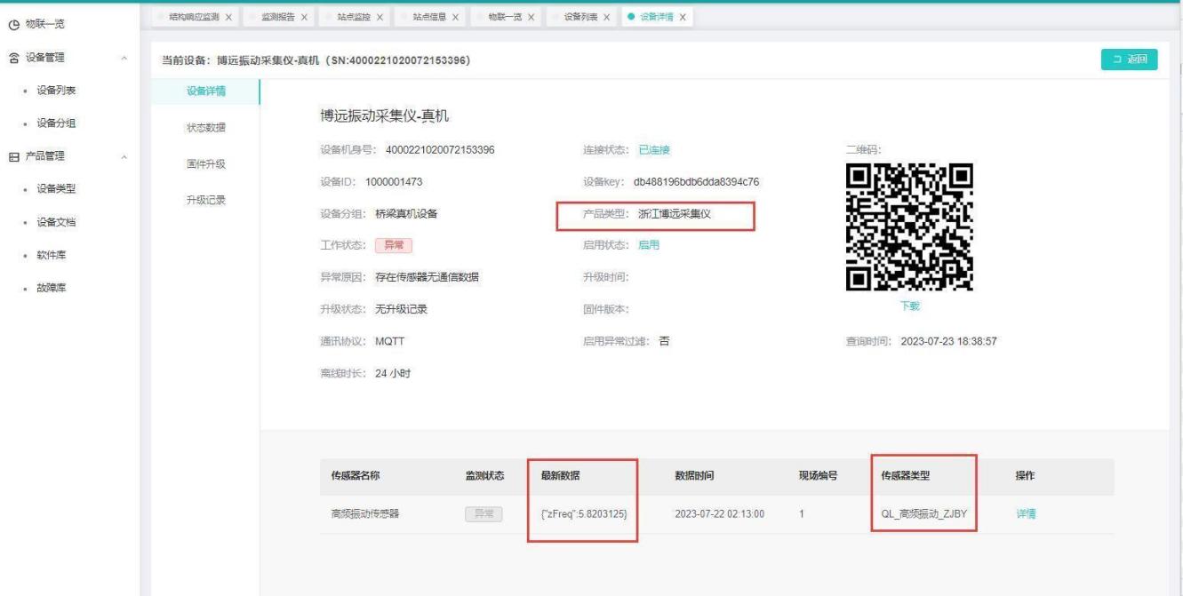 注:设备详情界面,需站点绑定该设备才会展示最新一条监测数据