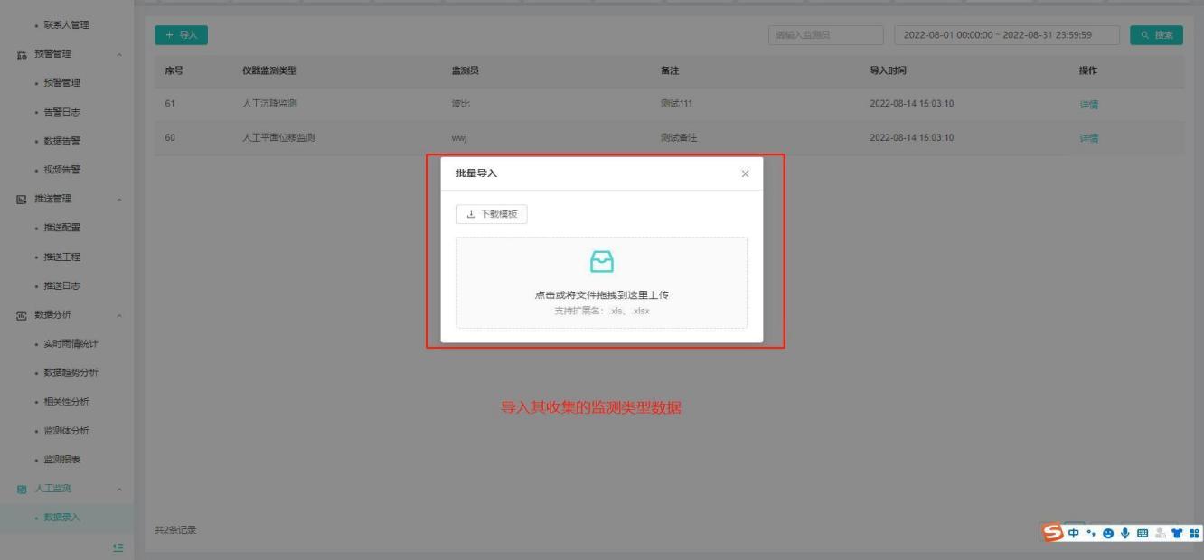 【功能说明】针对工作人员在指定日期中收集到的仪器监测数据进行导入保存