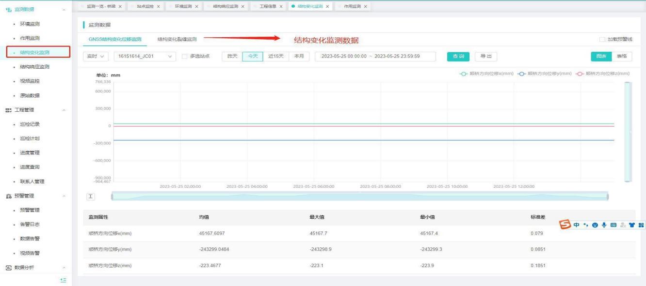 【操作说明】选择【桥梁行业】【监测预警】子系统 “结构变化监测”