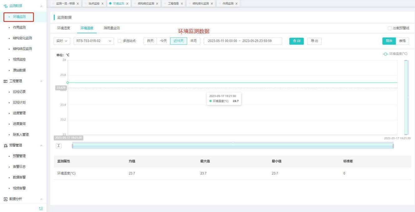 【功能说明】桥梁行业环境监测类型数据详情展示 如:查询、日查询、周查询、月查询、统计查询等