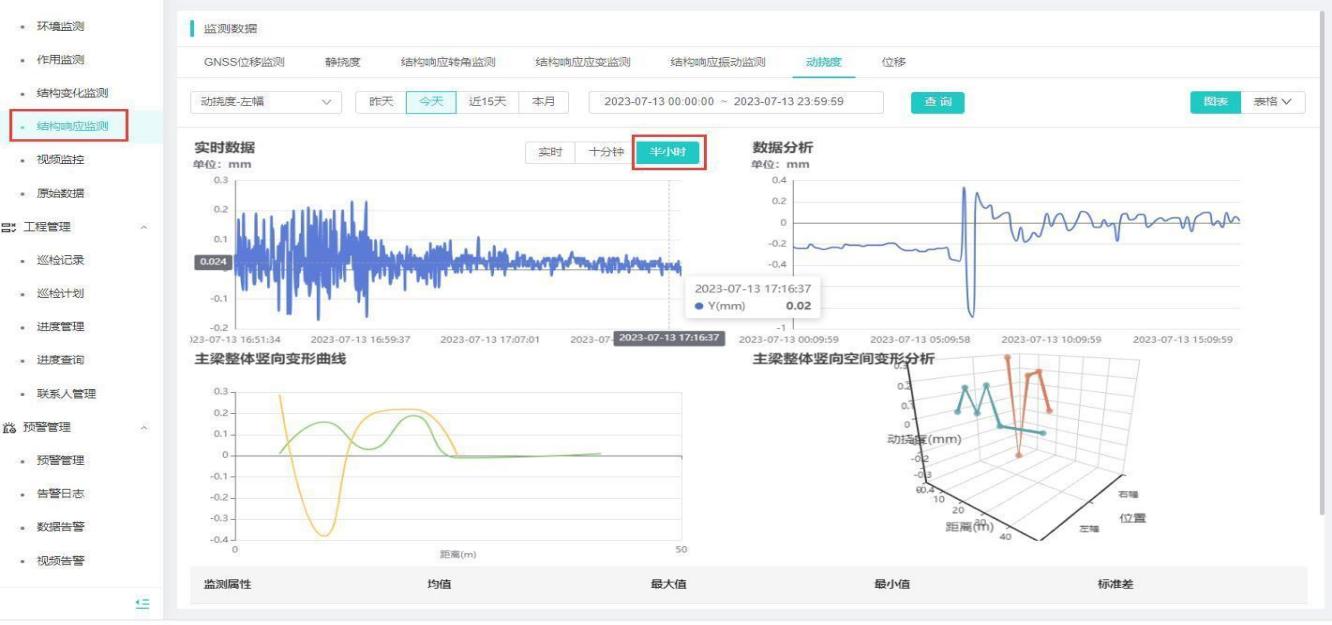 动挠度分析数据:时间维度选择【一周】的,图表及表格中,均按30分钟一个数据抽稀展示。