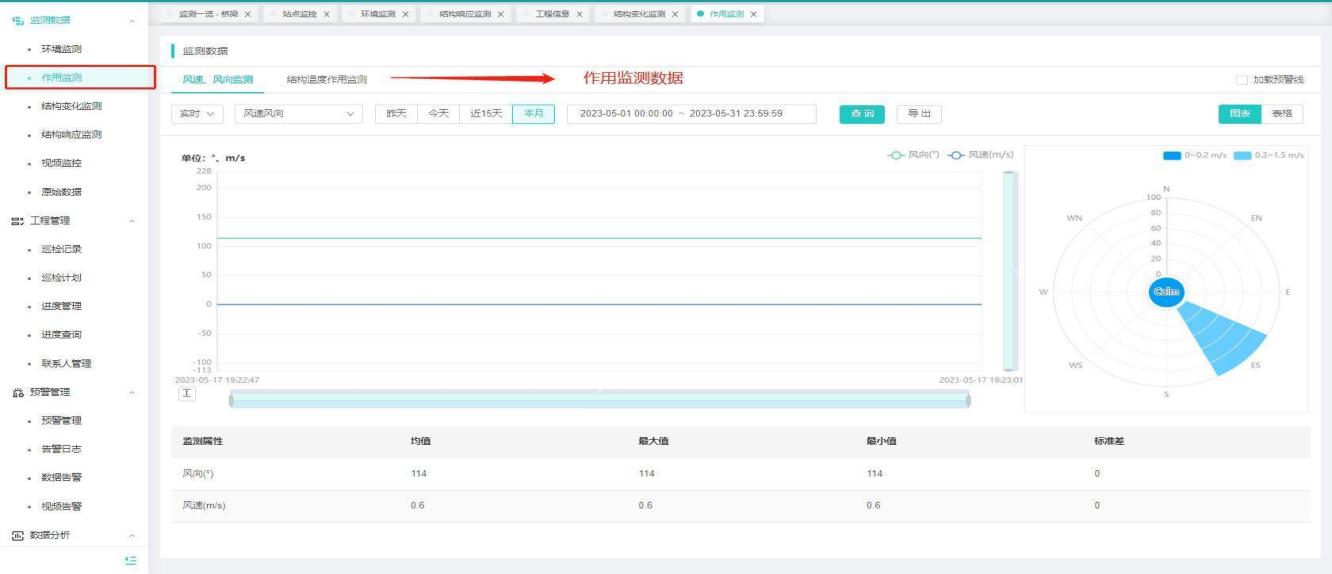 【操作说明】选择【桥梁行业】【监测预警】子系统 “作用监测”