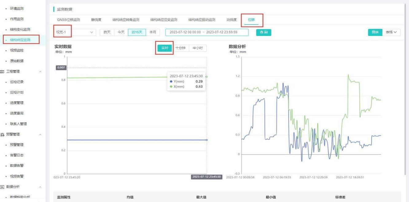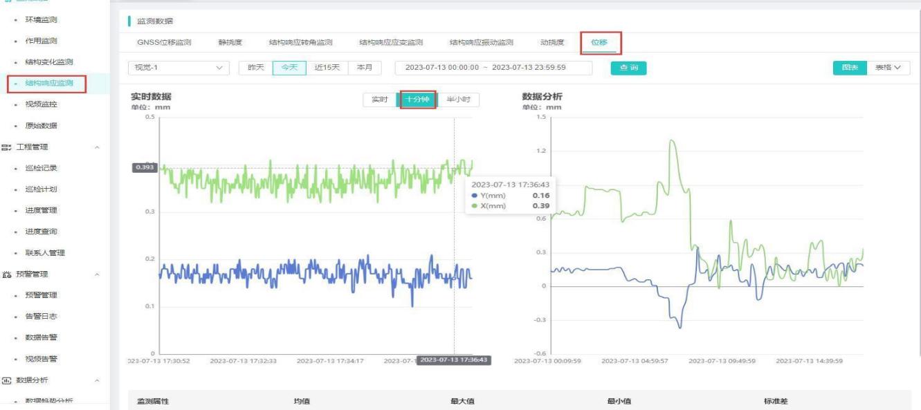 2、切换到【监测预警】-结构响应监测-位移监测方法界面,查看界面展示