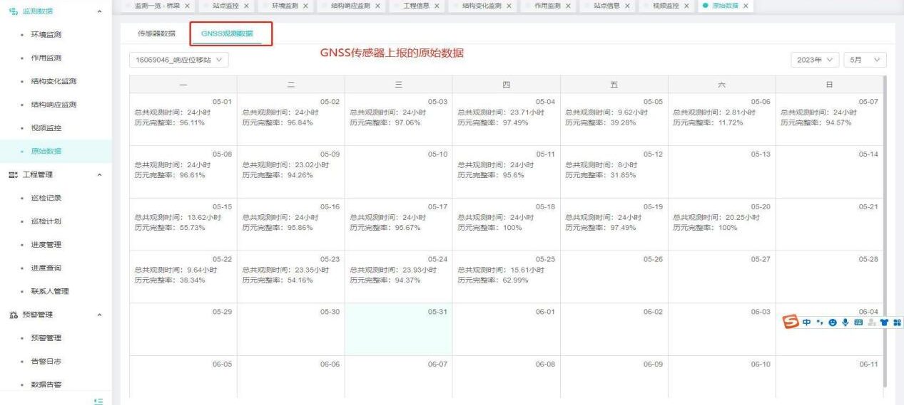 4、鼠标移进点击某一个“点”数据时,可以有个小浮窗加载这个“点”的各监测项的实时数据(GNSS这类的多个监测因子以单个监测因子显示)和采集时间;