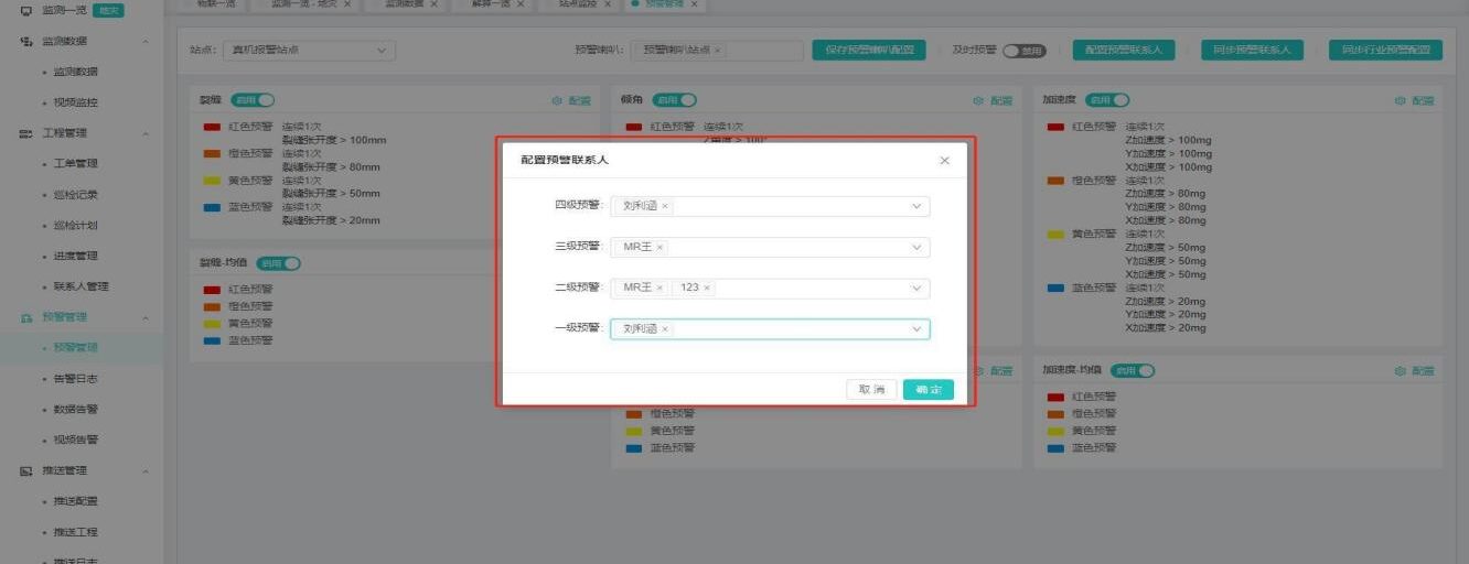 1、选择同步预警联系人 2.选择需要同步预警联系人的站点 3.预警联系人同步到其他站点