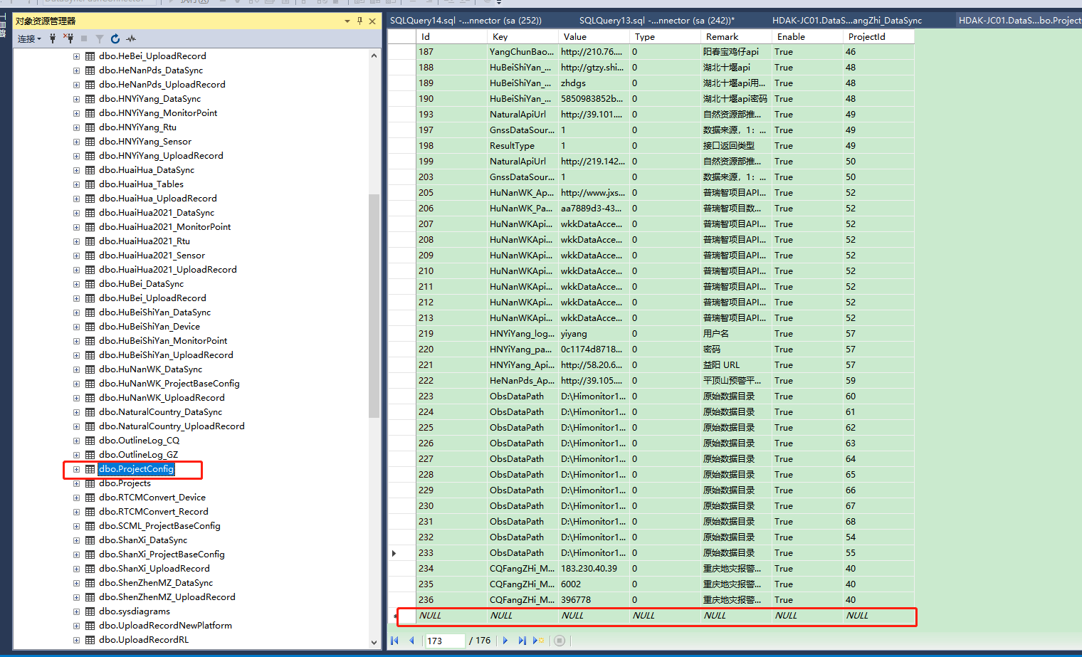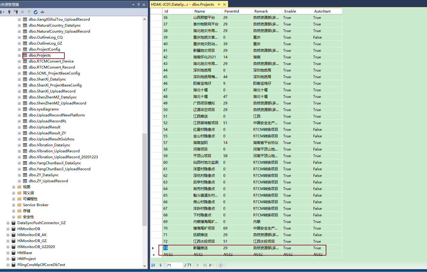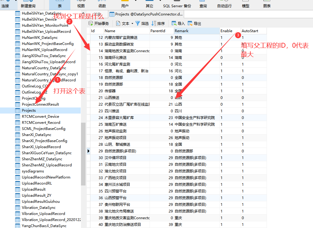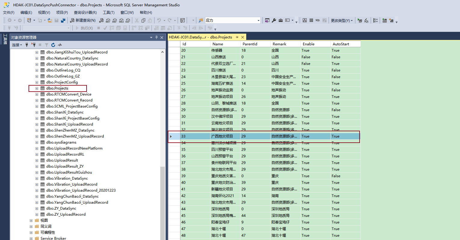 - 在Projects中添加项目,例:添加自然自然局的推送,仿照广西项目,ID顺序增加,其他不变