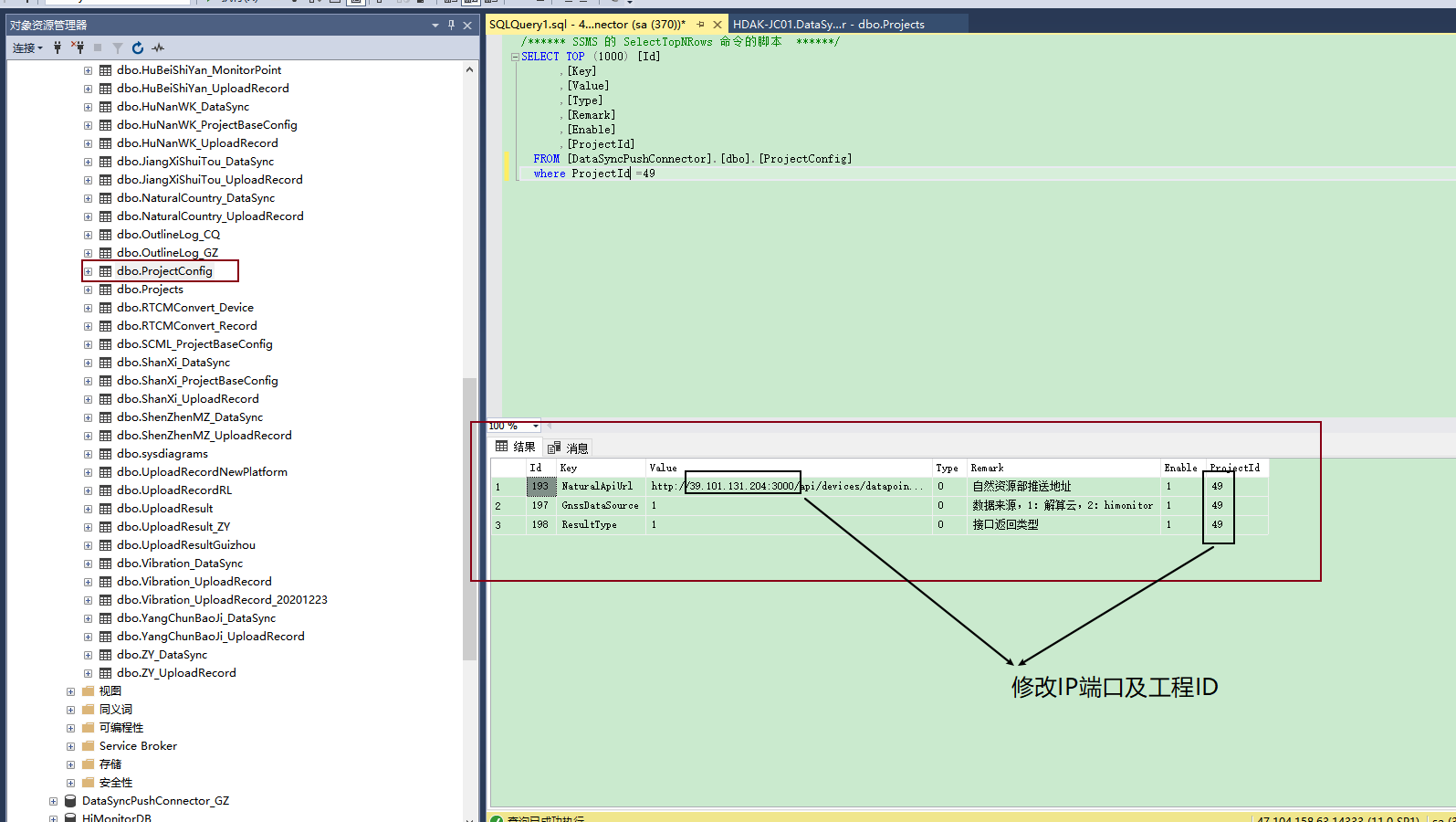 - 在ProjectsConfig中模仿广西项目添加配置,修改IP端口及工程ID对应