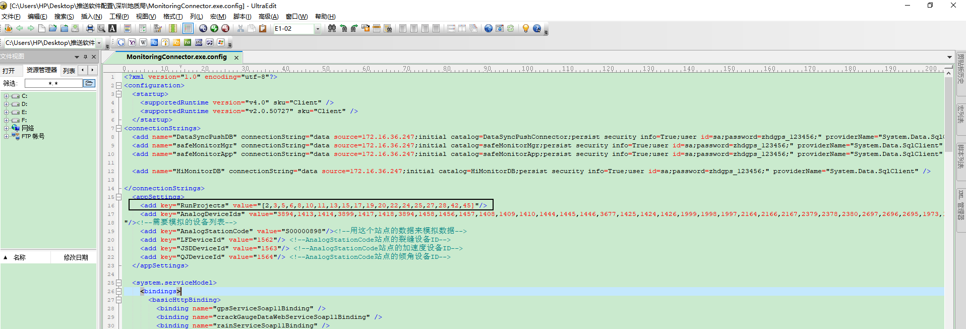- 在推送软件MonitoringConnector.exe.config配置文件中 key=”RunProjects” value的值添加进去工程ID