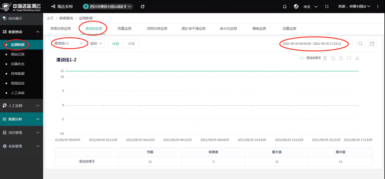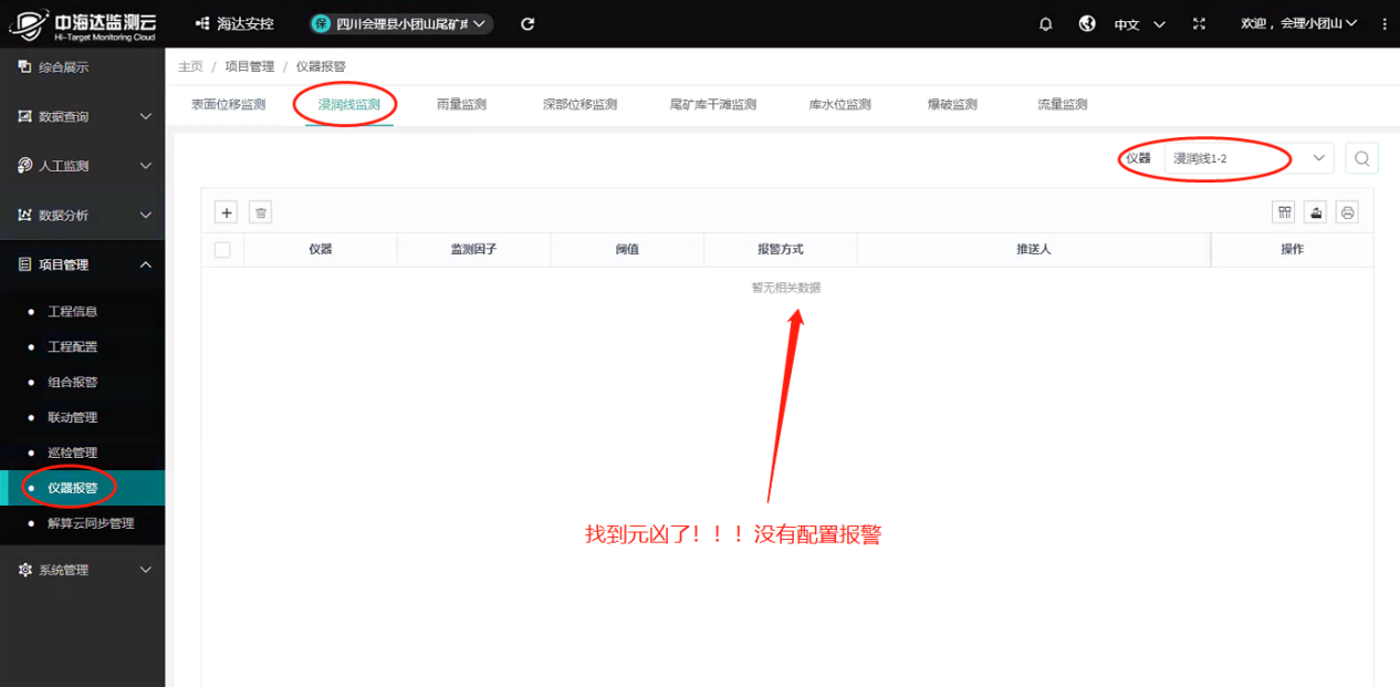 监测云上浸润线监测体分析,部分设备没有显示出来