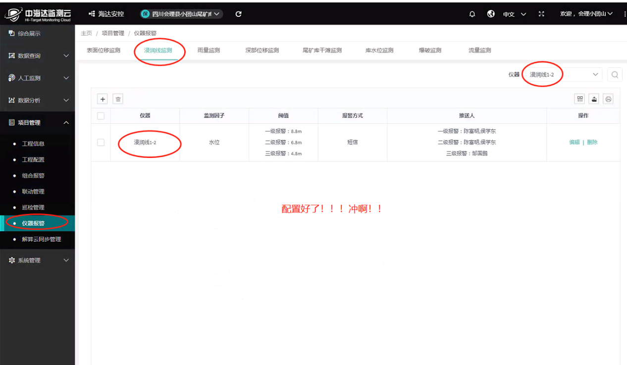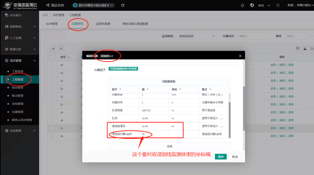 - 仪器配置【浸润线埋深、浸润线仪器X坐标】配置与监测体一致!