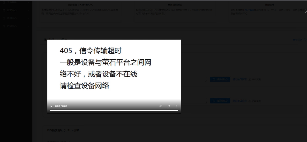 问题描述:丽水机场土石方工程葛洲坝集团,视频监控无法实时播放,查看视频显示:“流媒体向没备发送或接受信令招时/cas超时响应”