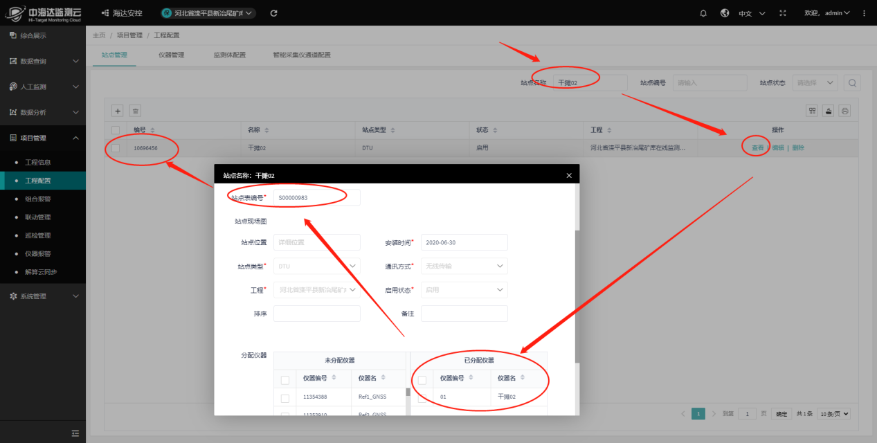 4、【查询该仪器 所属站点相关信息】