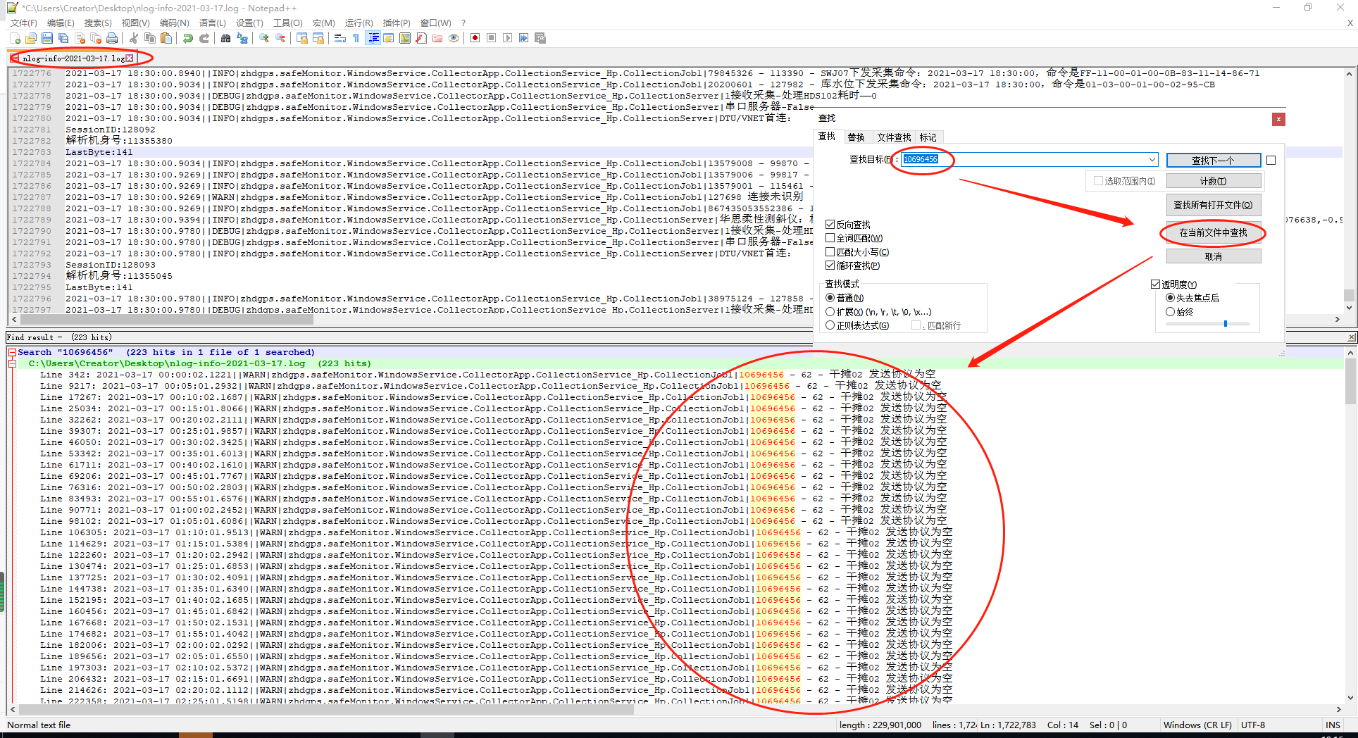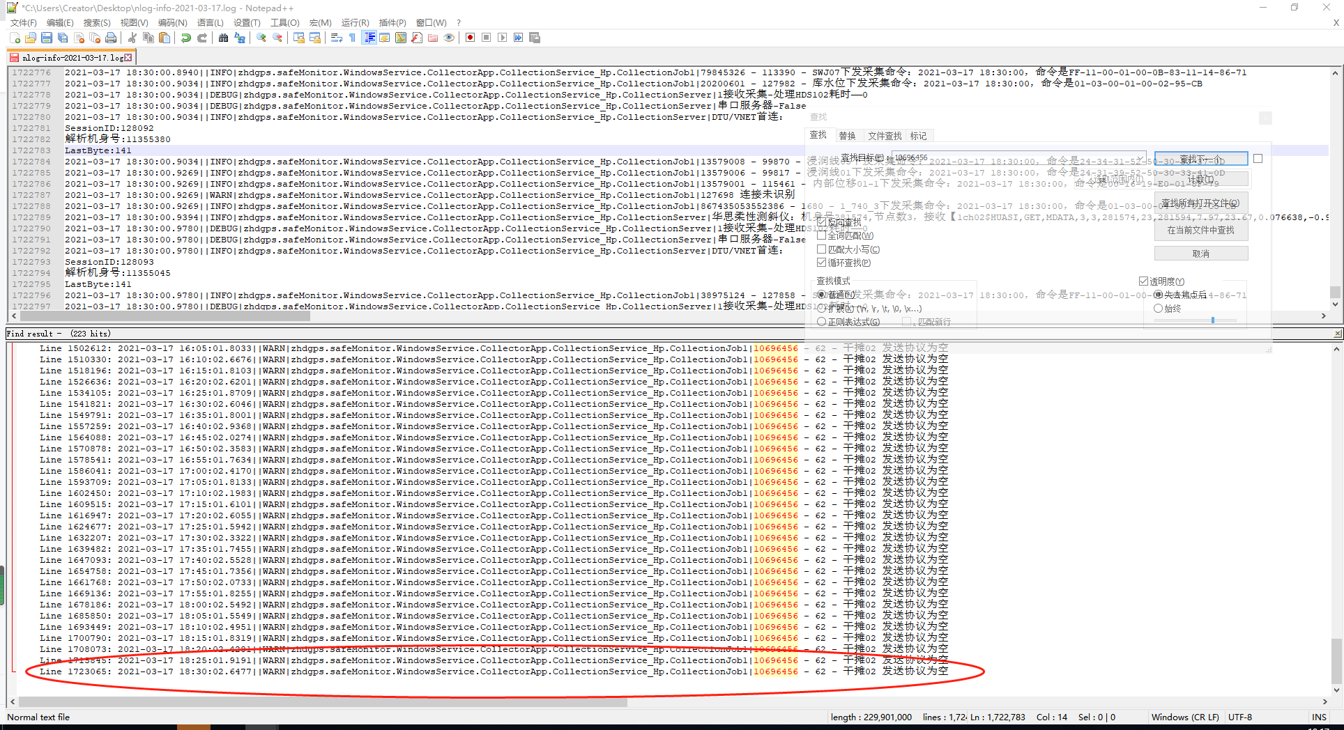 6、【用编号,排查采集服务日志】