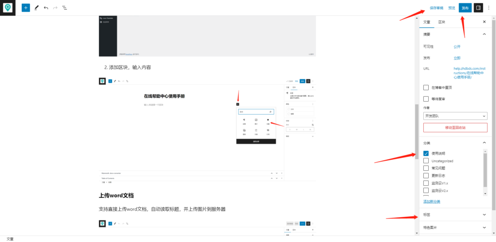 - 点击“保存草稿”或“发布”