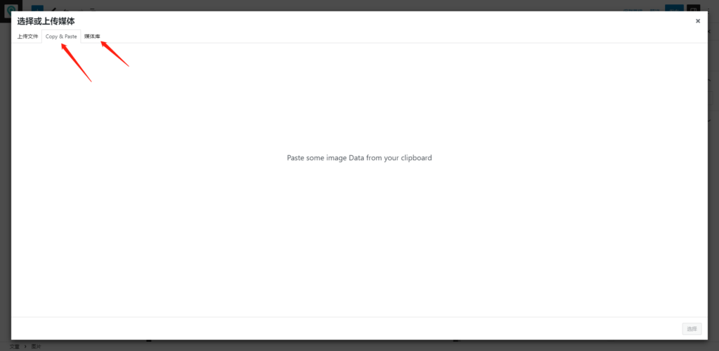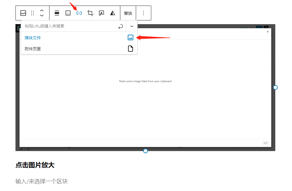 写文章时 图片区块可以直接上传图片或选择媒体库的图片,也可以直接粘贴图片