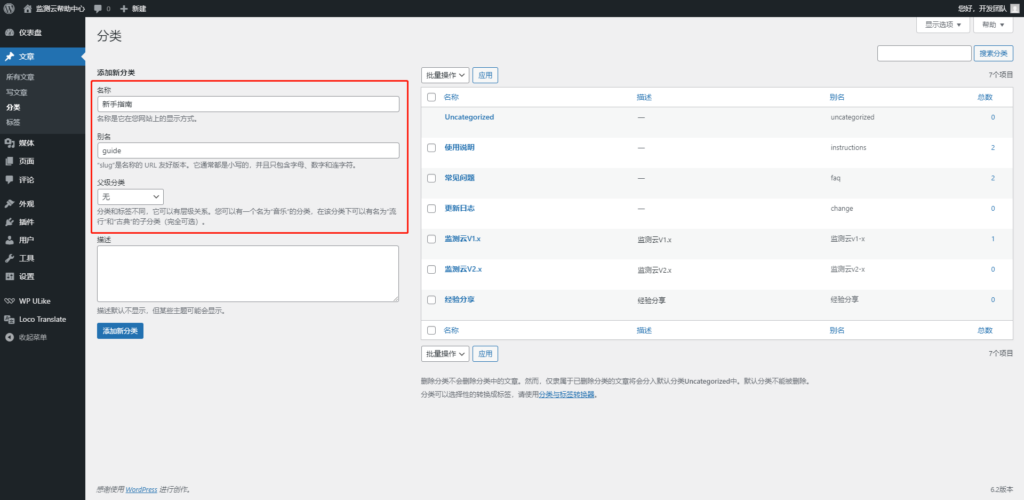 - 点击侧边“文章-分类”菜单